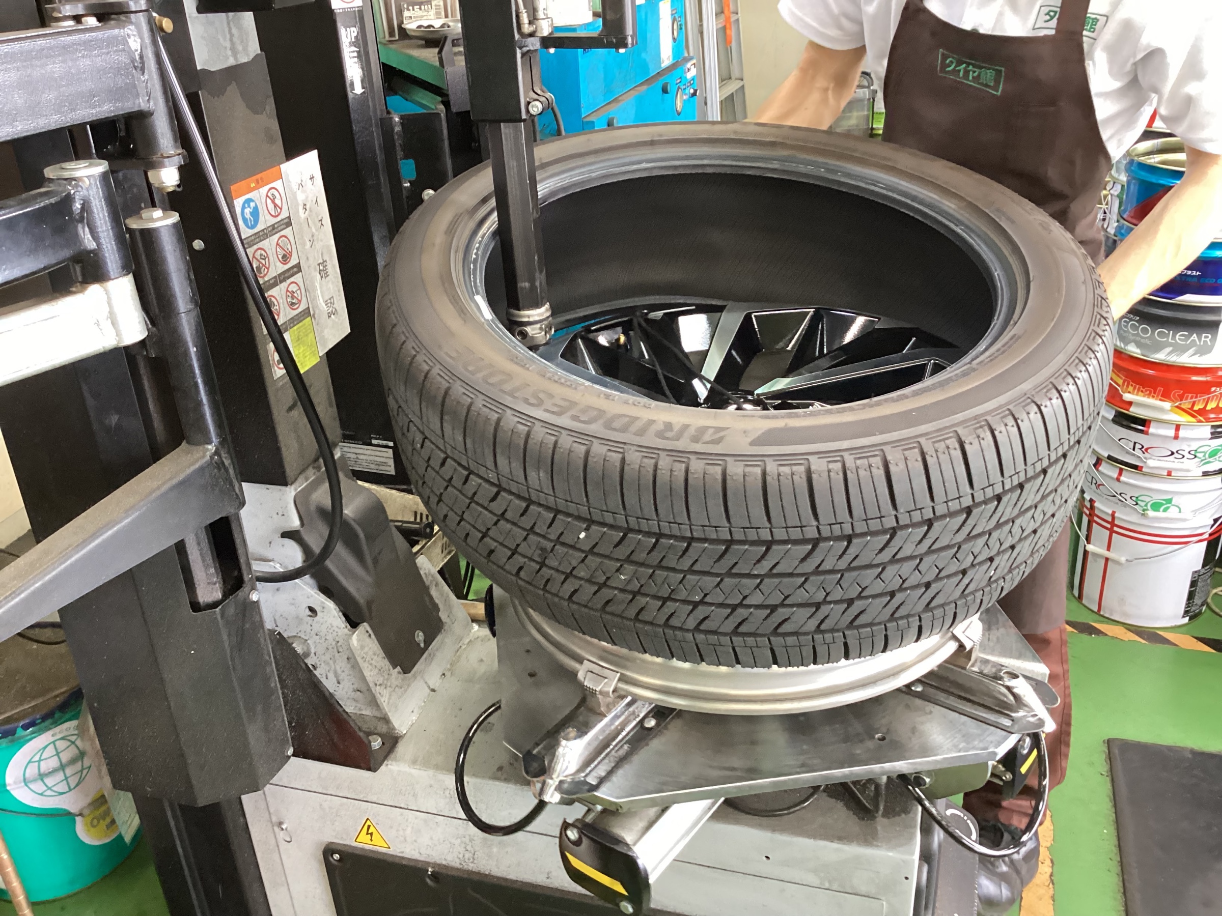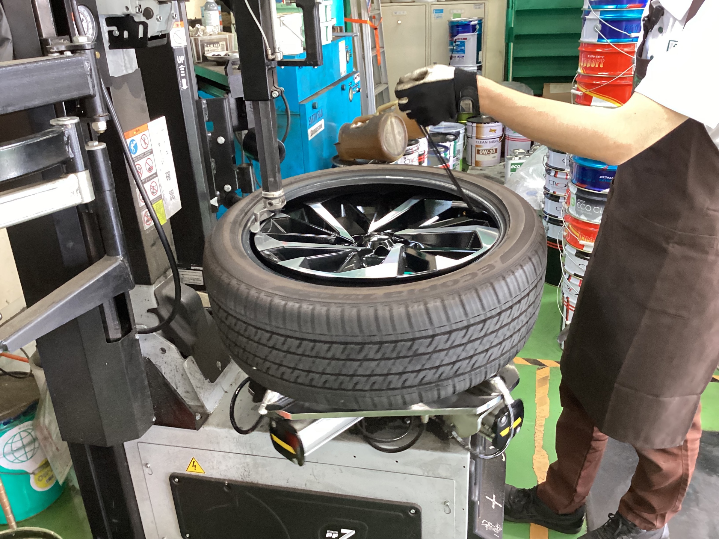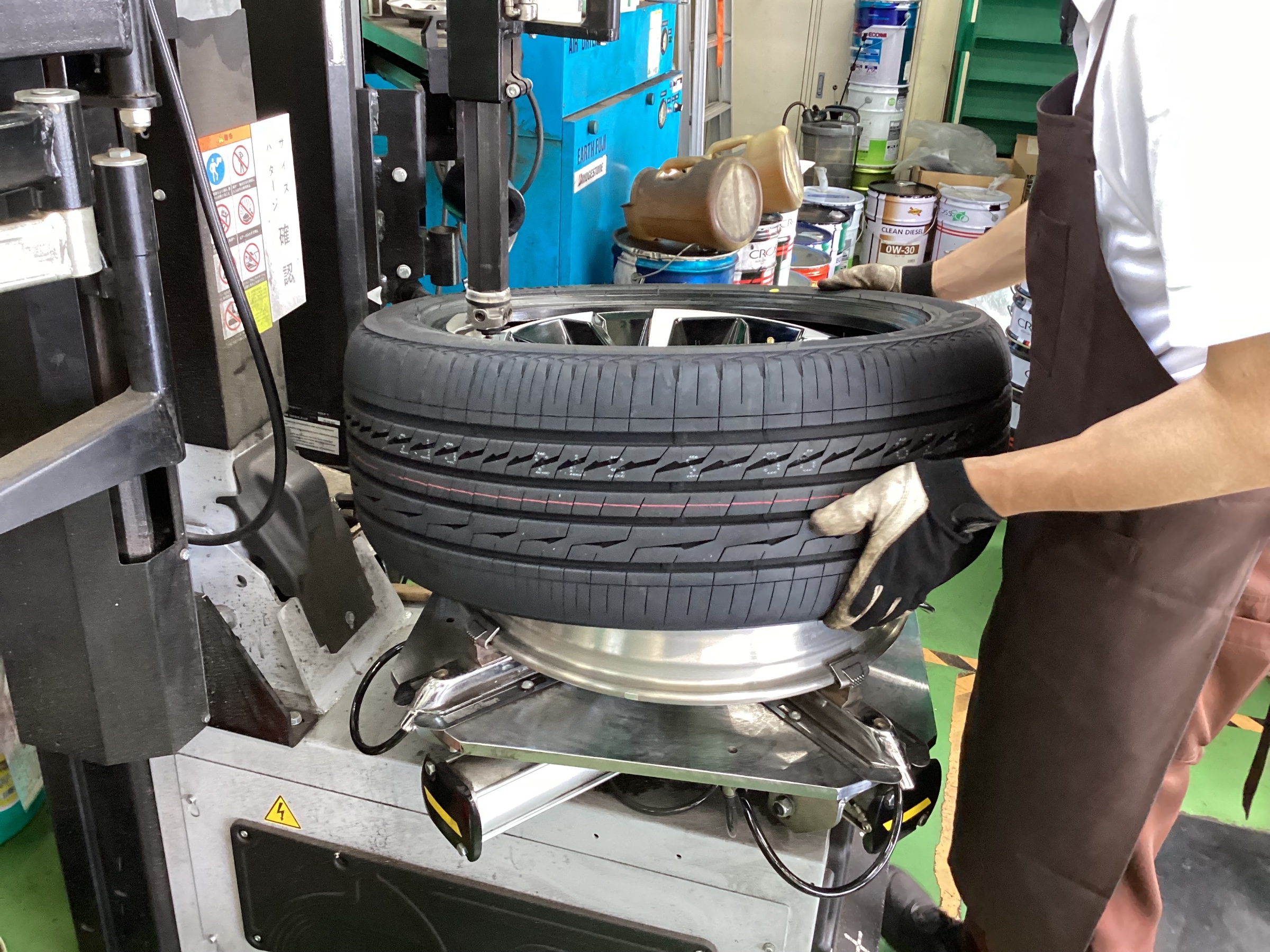 タイヤチェンジーで丁寧に確実に組み付けていきます!