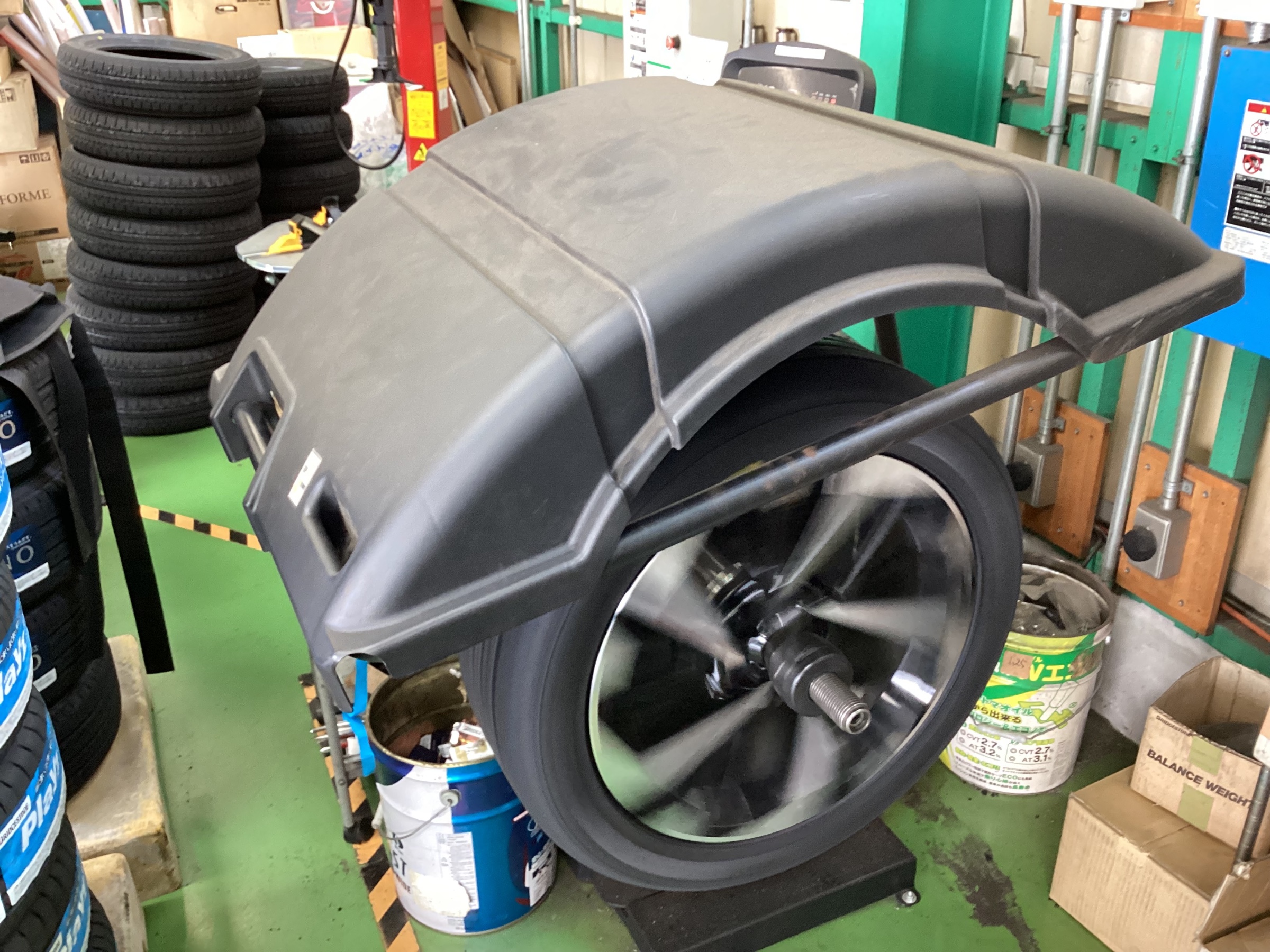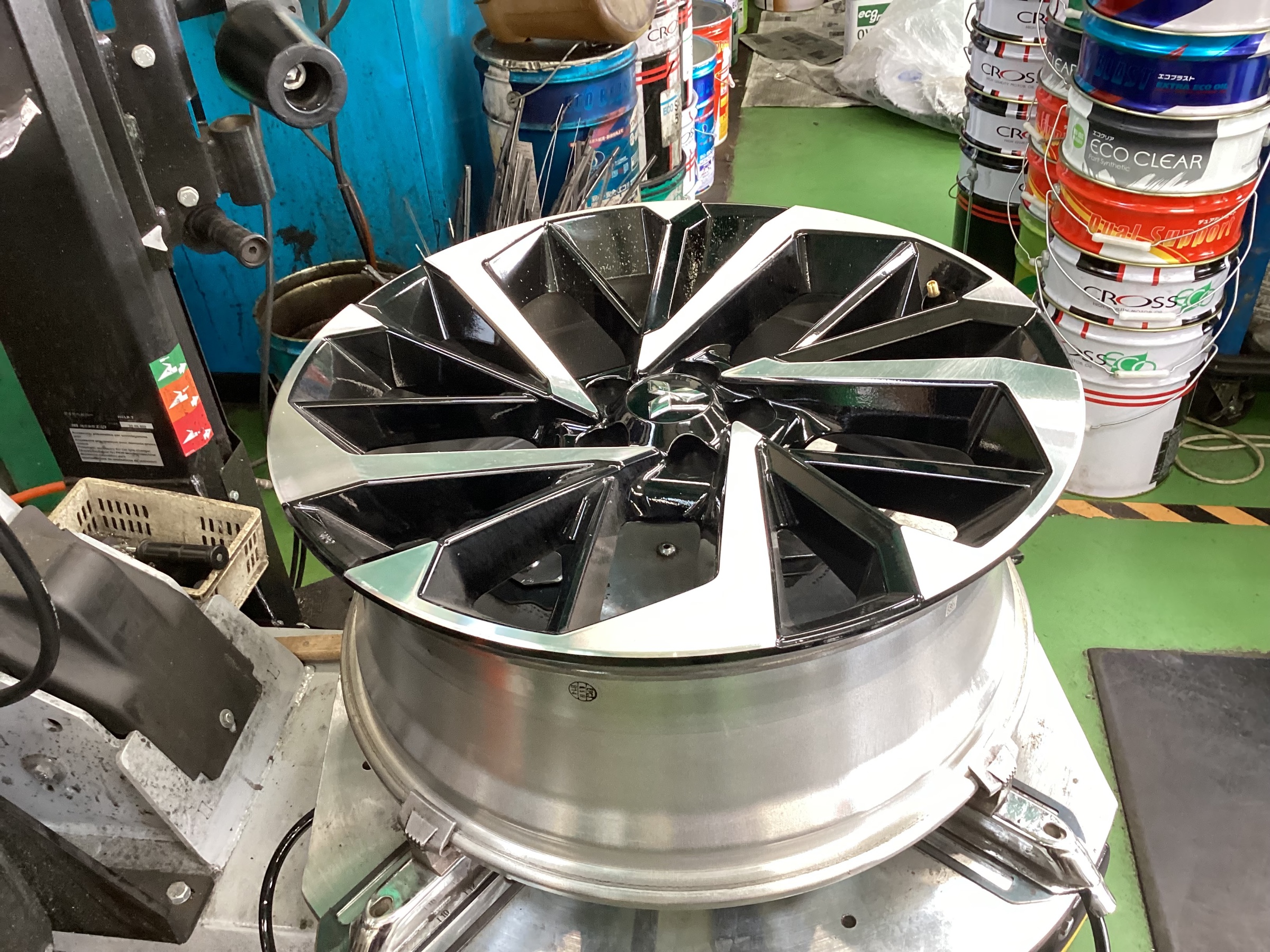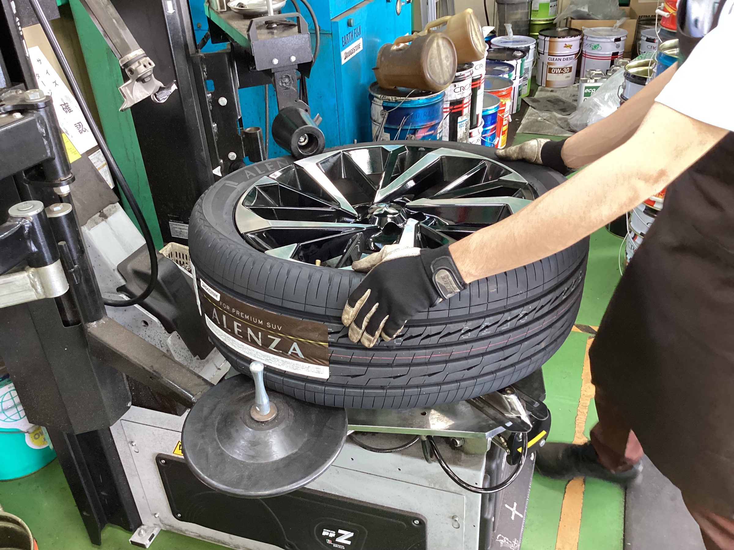 タイヤチェンジーで丁寧に確実に組み付けていきます!