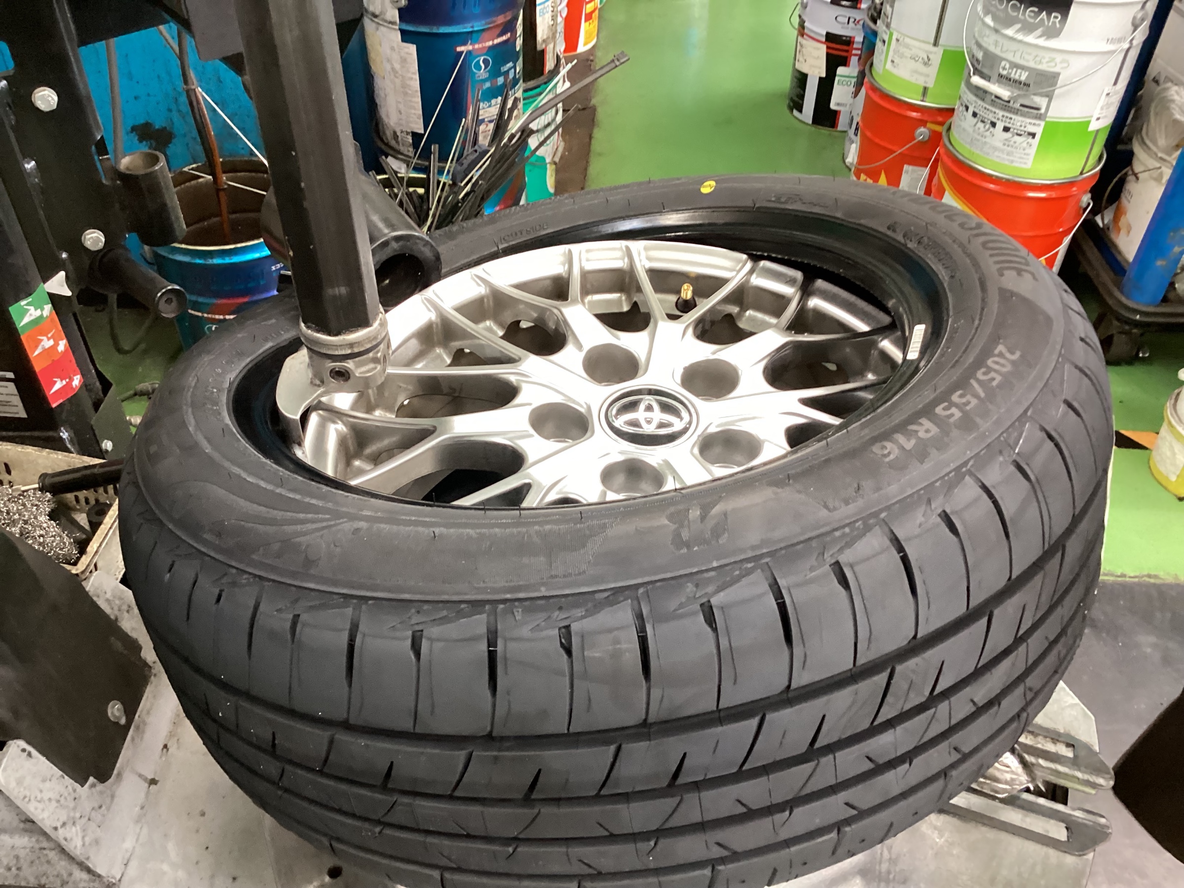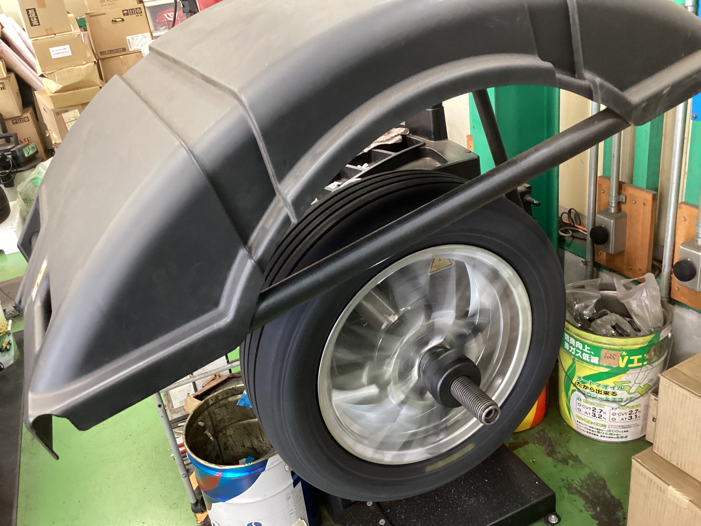 タイヤチェンジーで丁寧に確実に組み付けていきます!