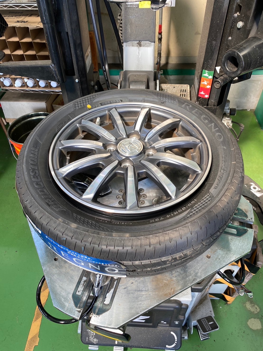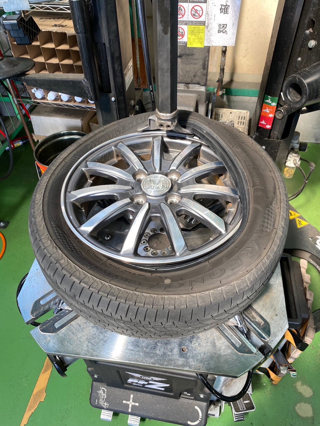 バランサーでホイールバランスを取ります!!