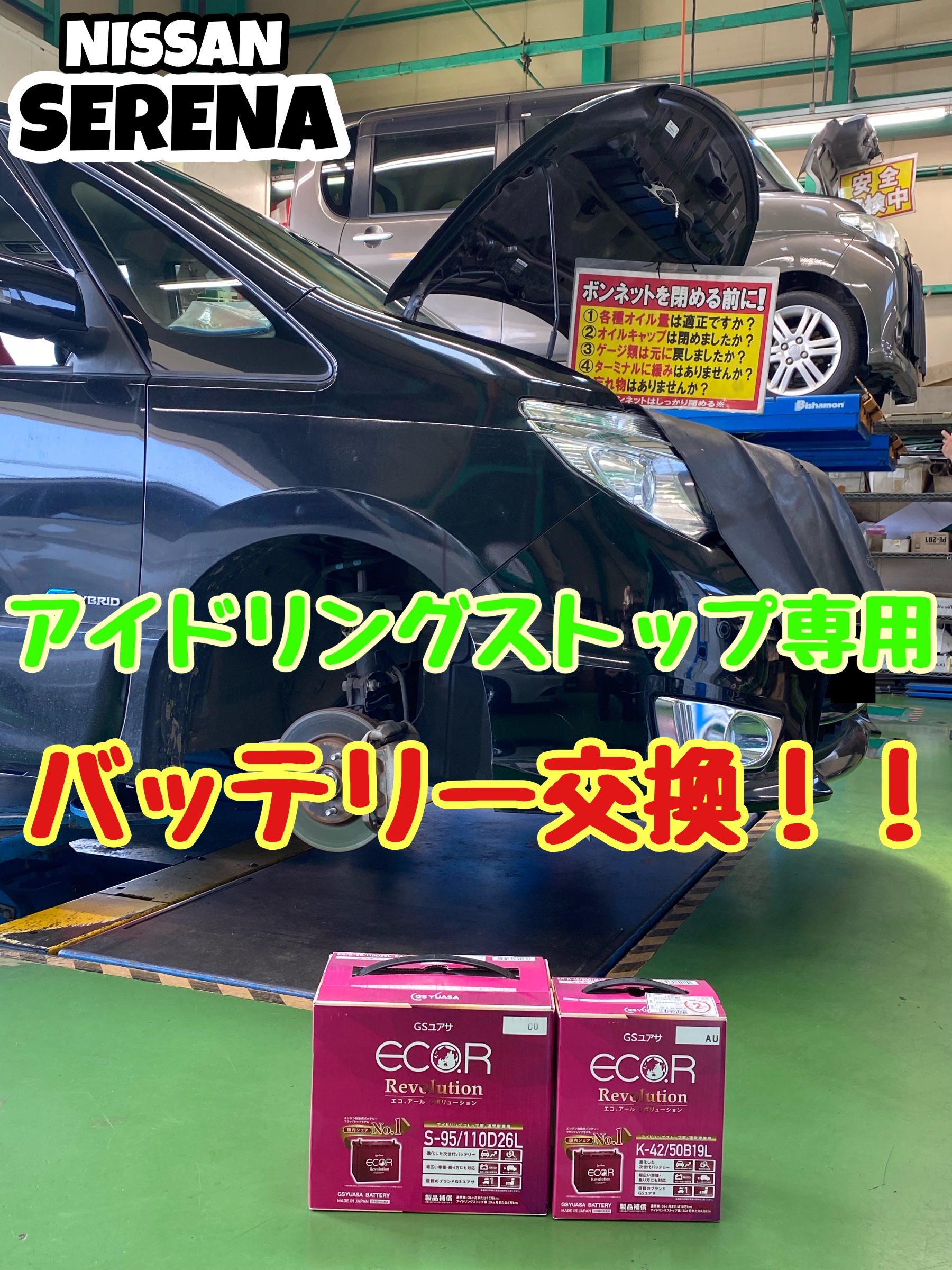 セレナ『アイドリングストップ専用』バッテリー交換♩