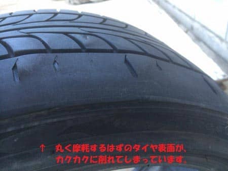 さらに本来、丸く摩耗するハズのタイヤ表面も