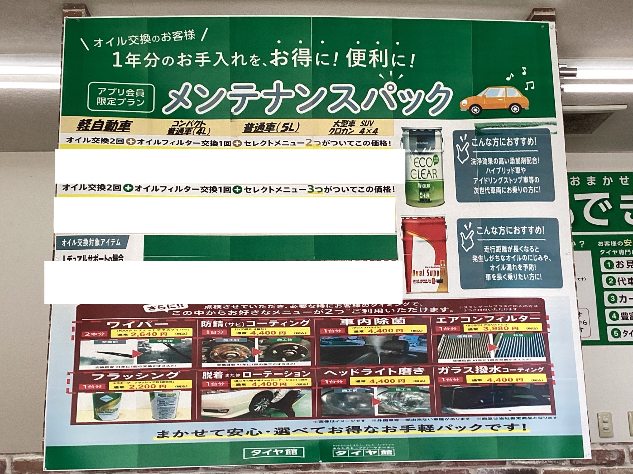 タイヤ館ではお得なメンテナンスパックをご用意しております!