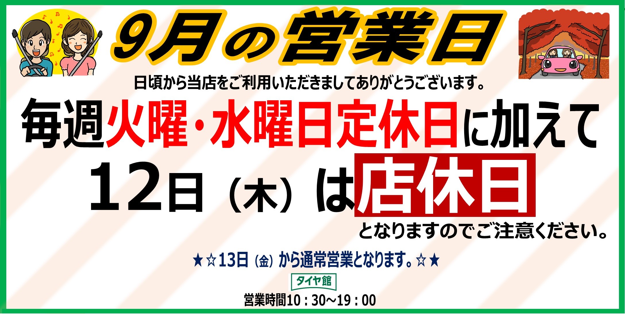 9/10(火)~9/12(木)は定休日とさせていただきます。