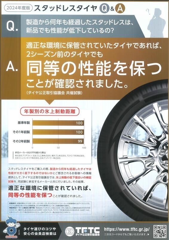 スタッドレスタイヤの持ち越し品や、長期在庫品が