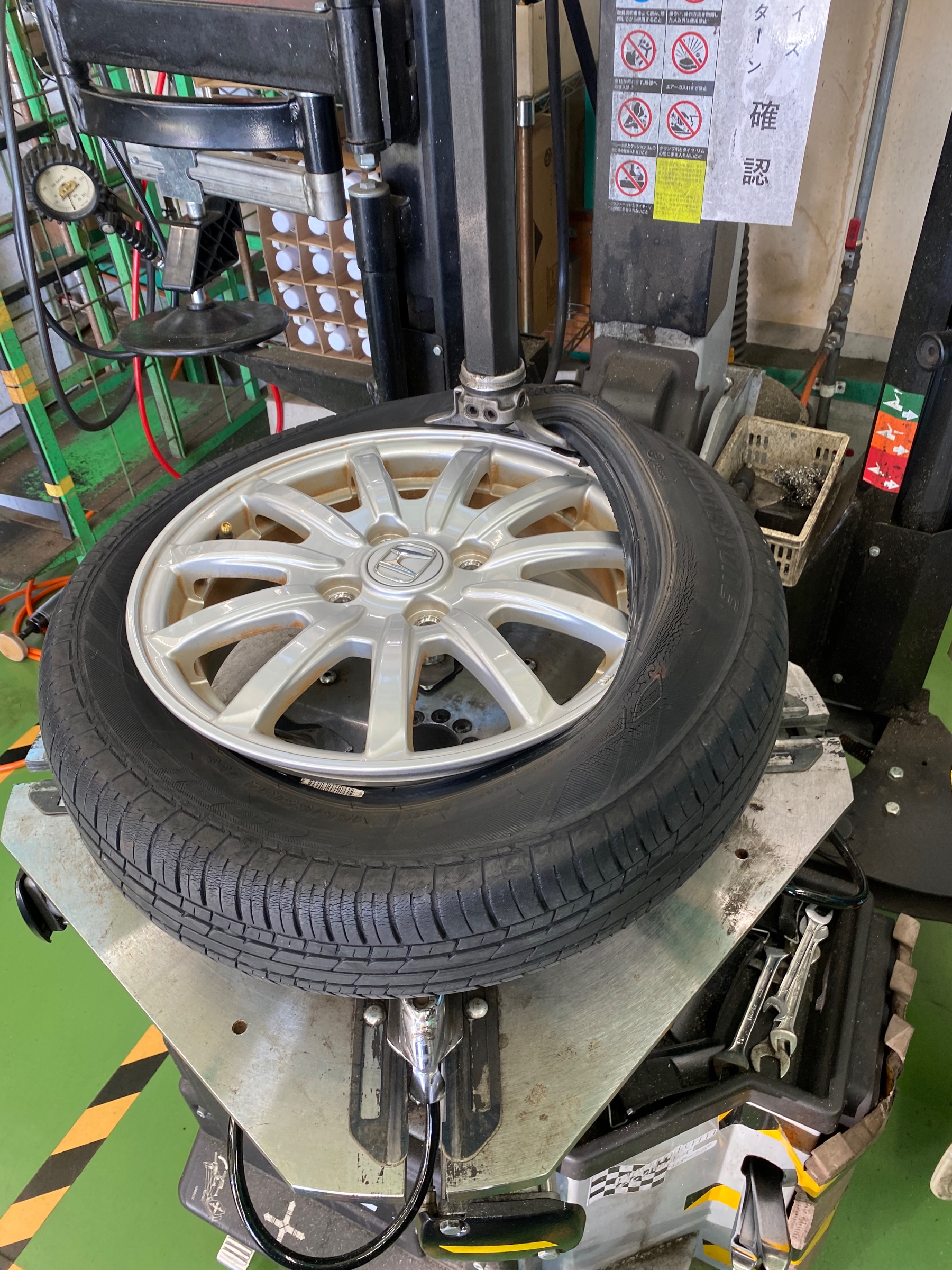 バランスのウエイトを取り外し、タイヤの組み替えです