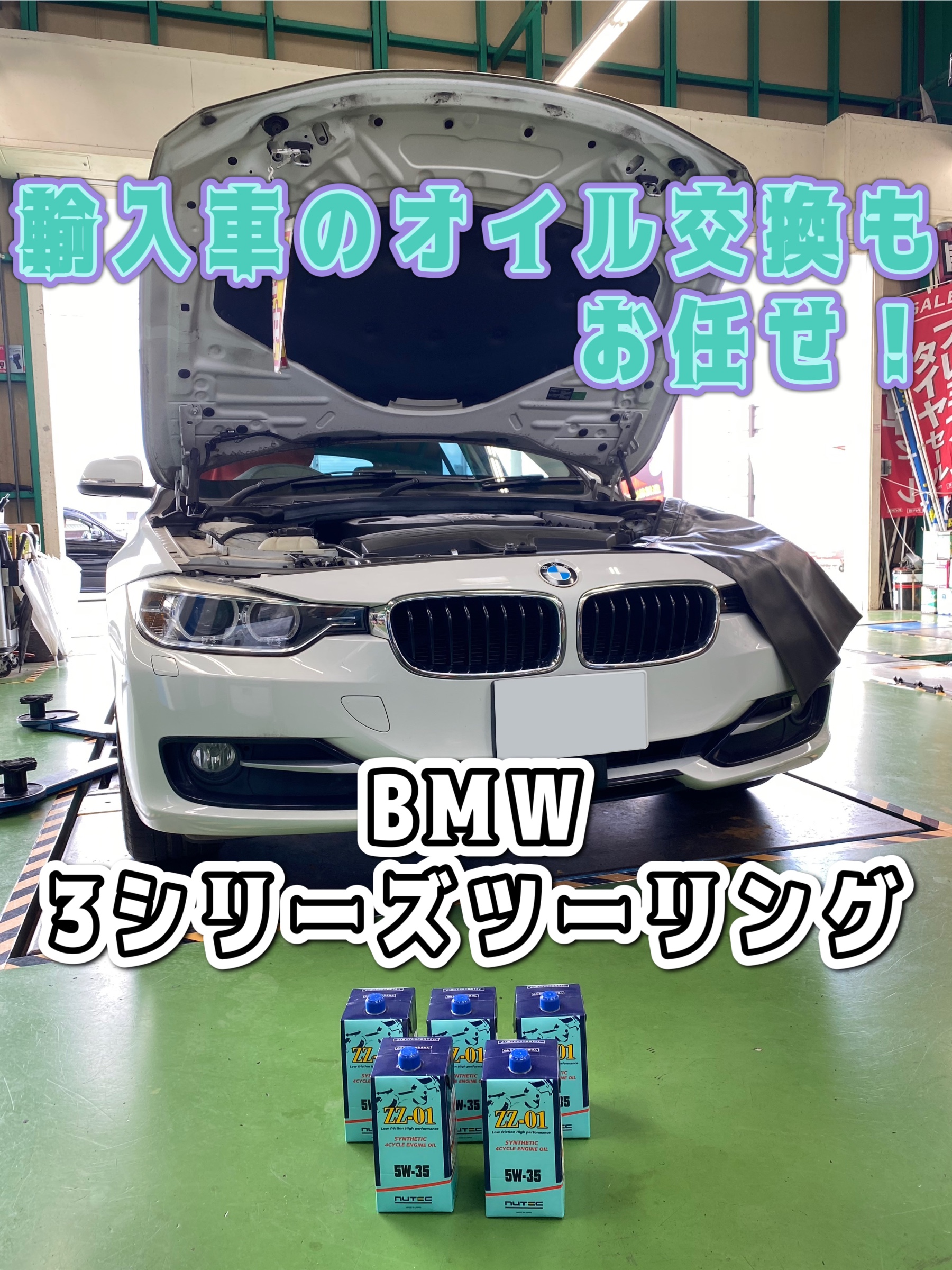 先日はBMW 3シリーズツーリングのオイル交換を