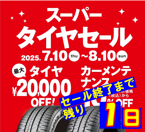 ☆タイヤスーパーセール☆タイヤ4本ご購入で最大¥20,000引♪♪カーメンテナンスも10%OFF٩( 'ω' )و!
