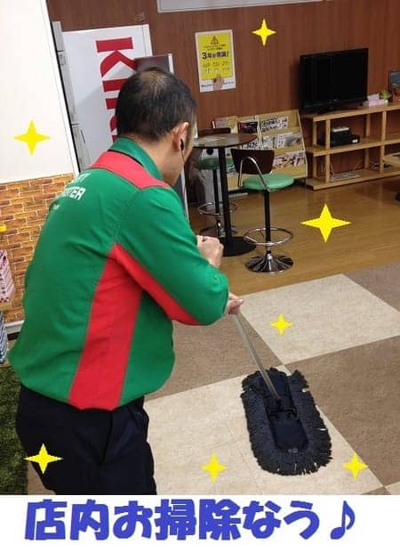 店内の掃除をするスタッフの図です(^^♪