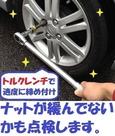 タイヤの状態や空気圧、ナットの締め付け等に