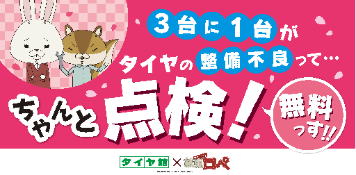 タイヤ館ではいつでも”無料”で空気圧点検を実施中ですので、