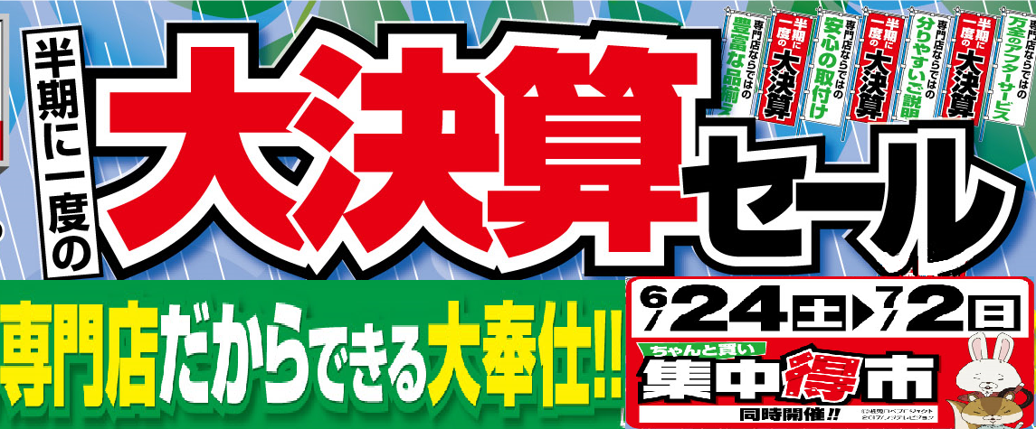 6月24日(土)より、『大決算セール&集中得市』を開催いたします!!