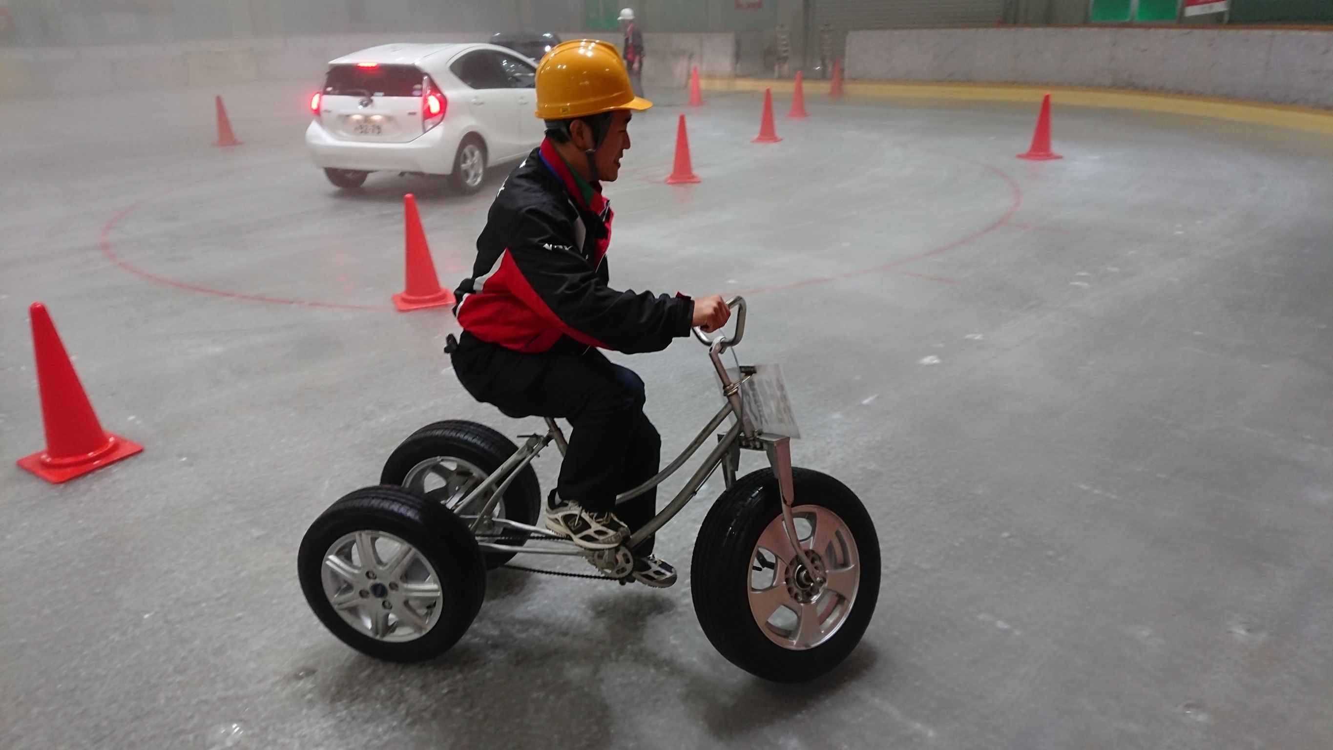 夏タイヤを装着した三輪車をアイスリンクの上で運転したんですが・・・ほとんど進みませんでした^_^;
