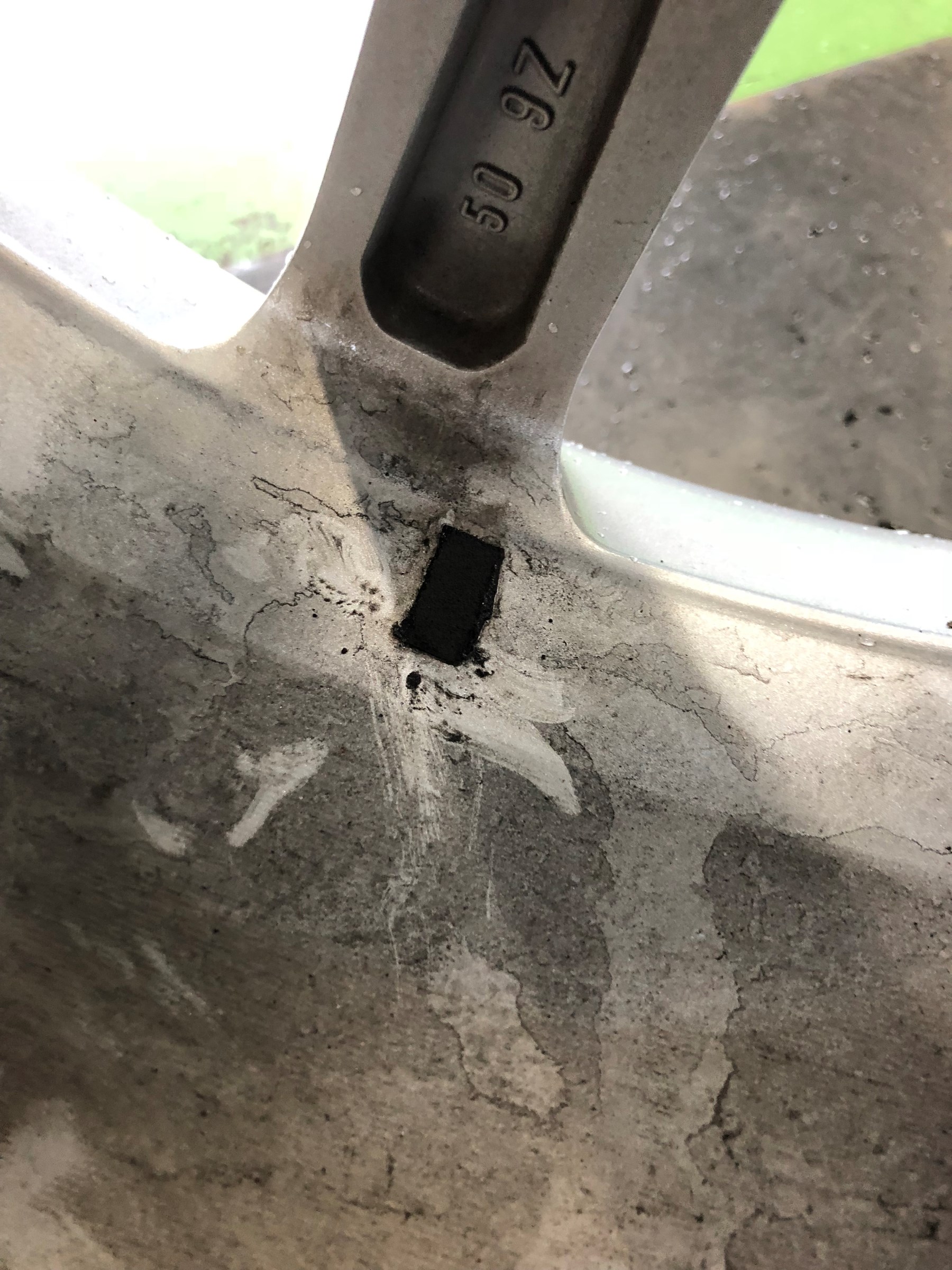 これは、もともとついていたバランスウェイトをはずしたところです。