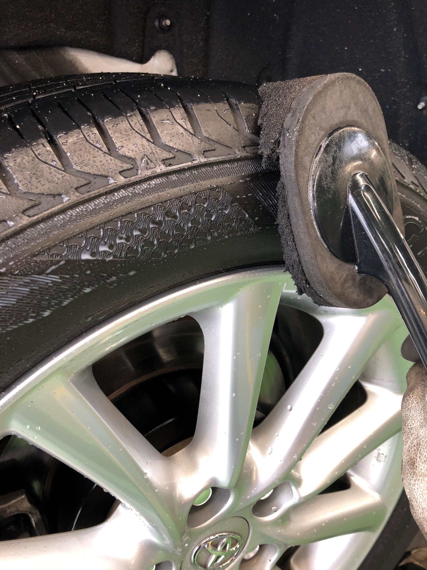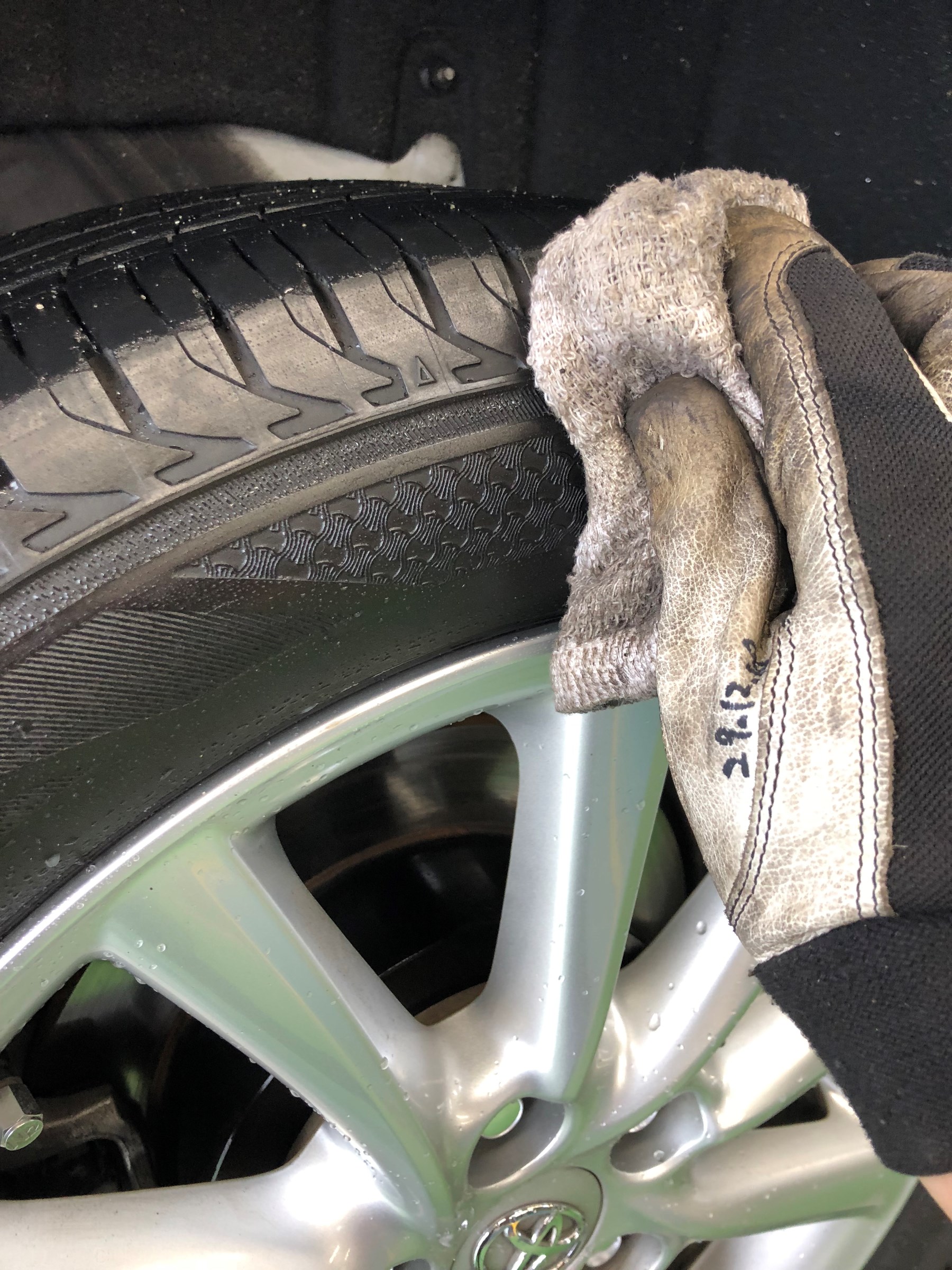 タイヤワックスを馴染ませるために、ウェスでもういちど拭いています。