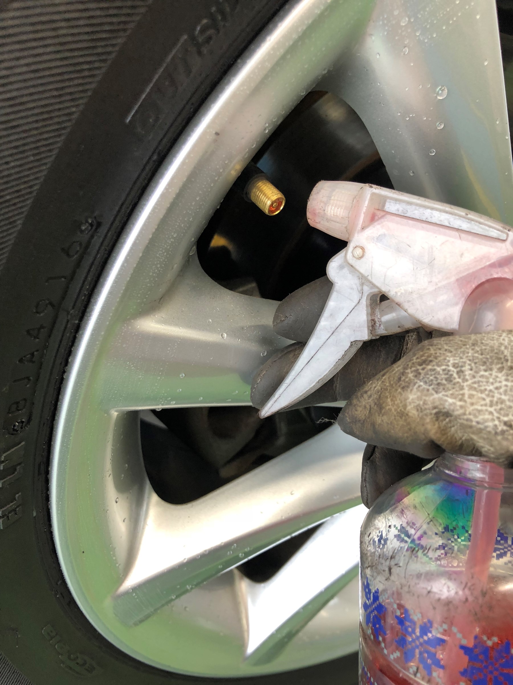 空気圧調整後は、バルブコア部分、バルブ部分から漏れがないかを