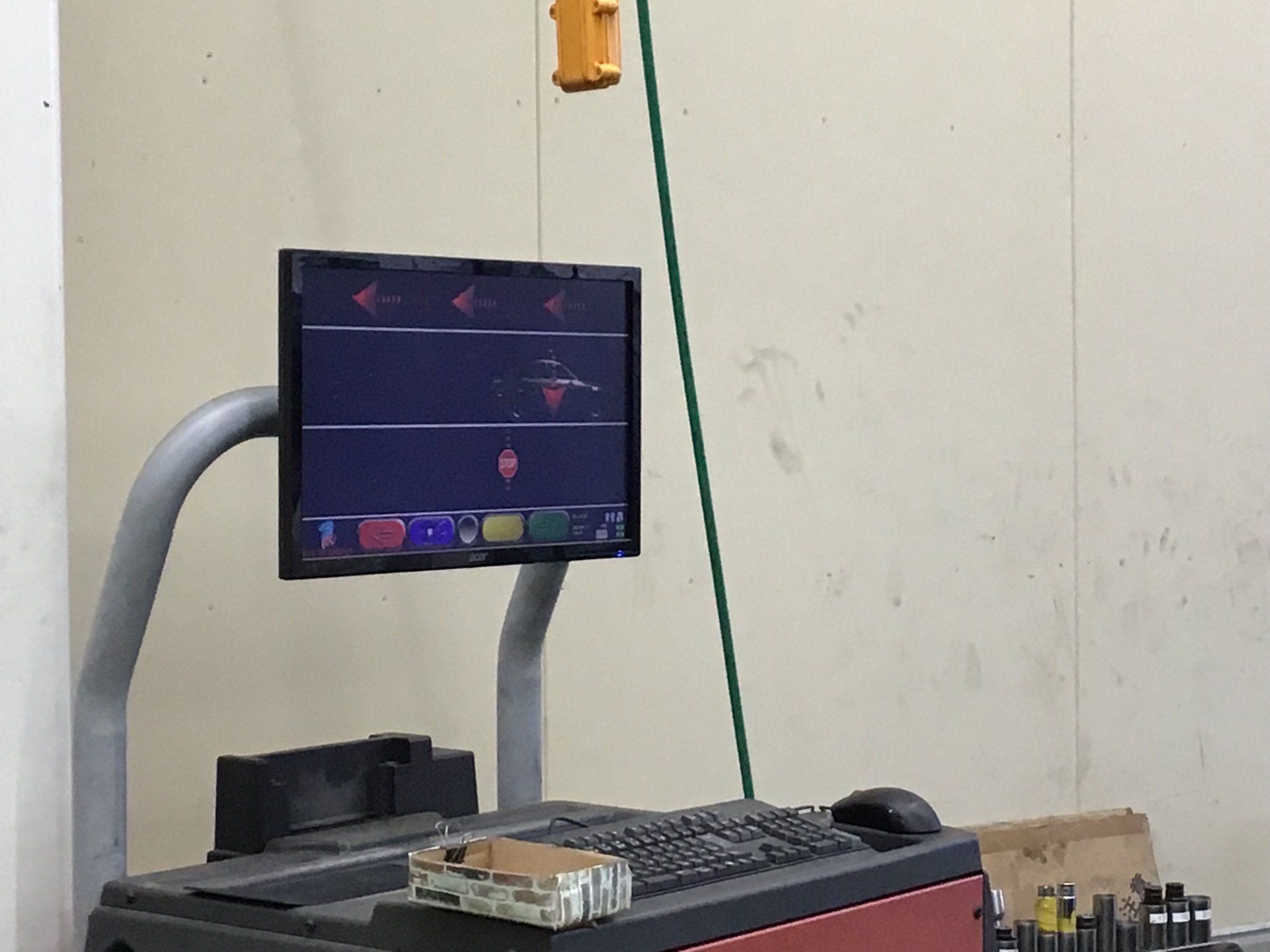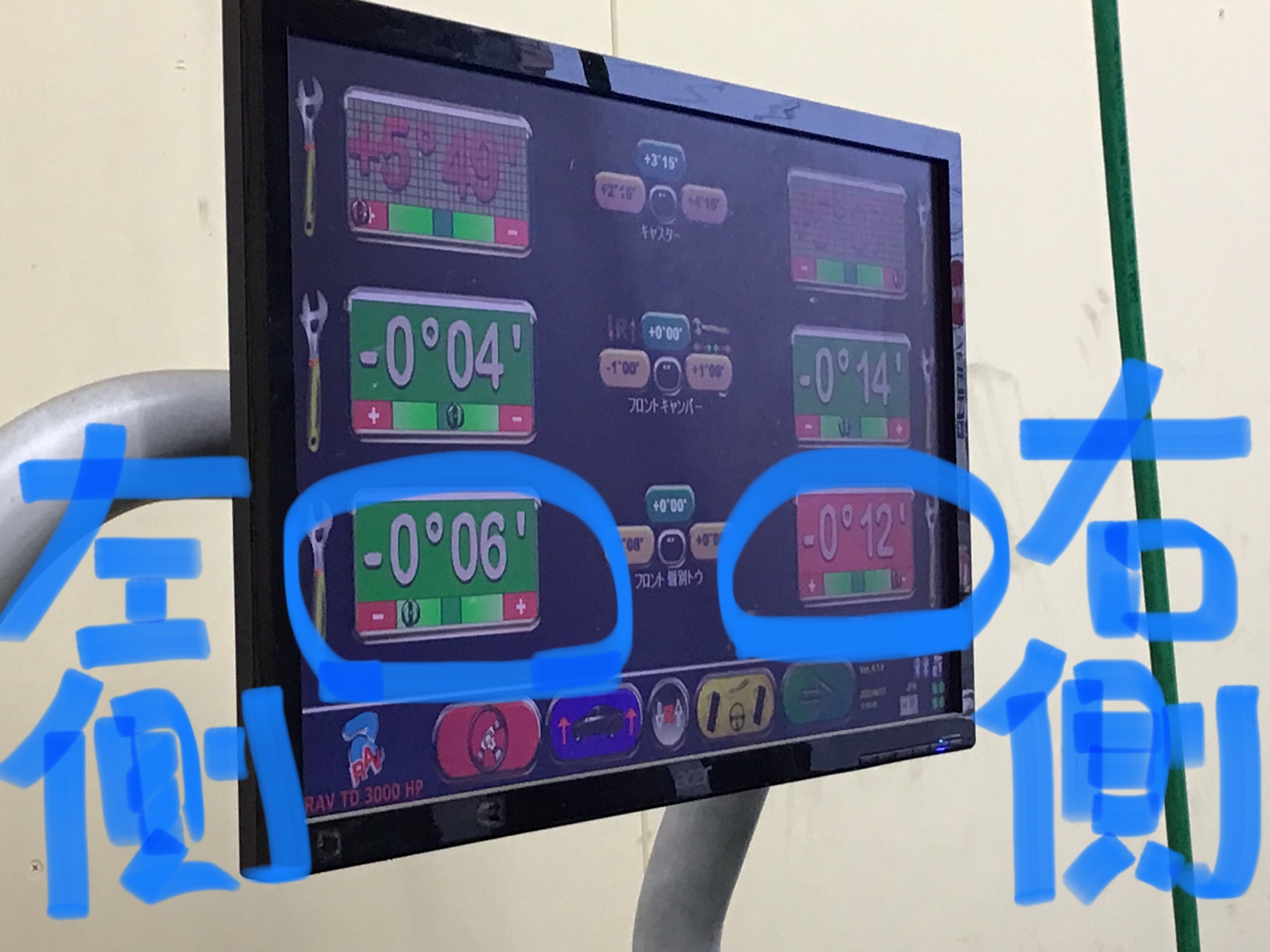 車両を前後に動かしたり、ステアリング(ハンドル)を左右に切ったりして、角度を測定していきます。