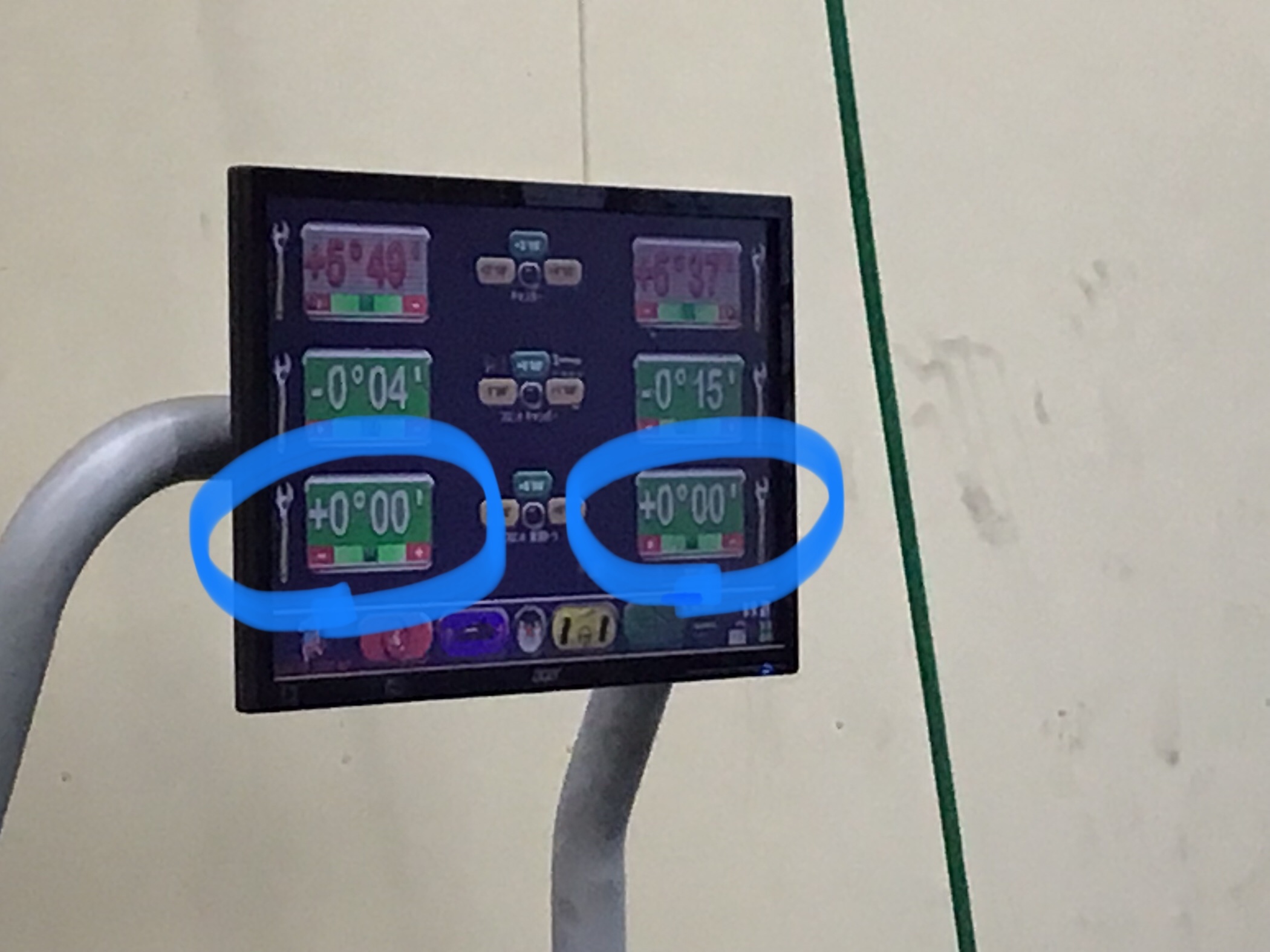 その後、ステアリング(ハンドル)を真ん中に固定して測定完了です。