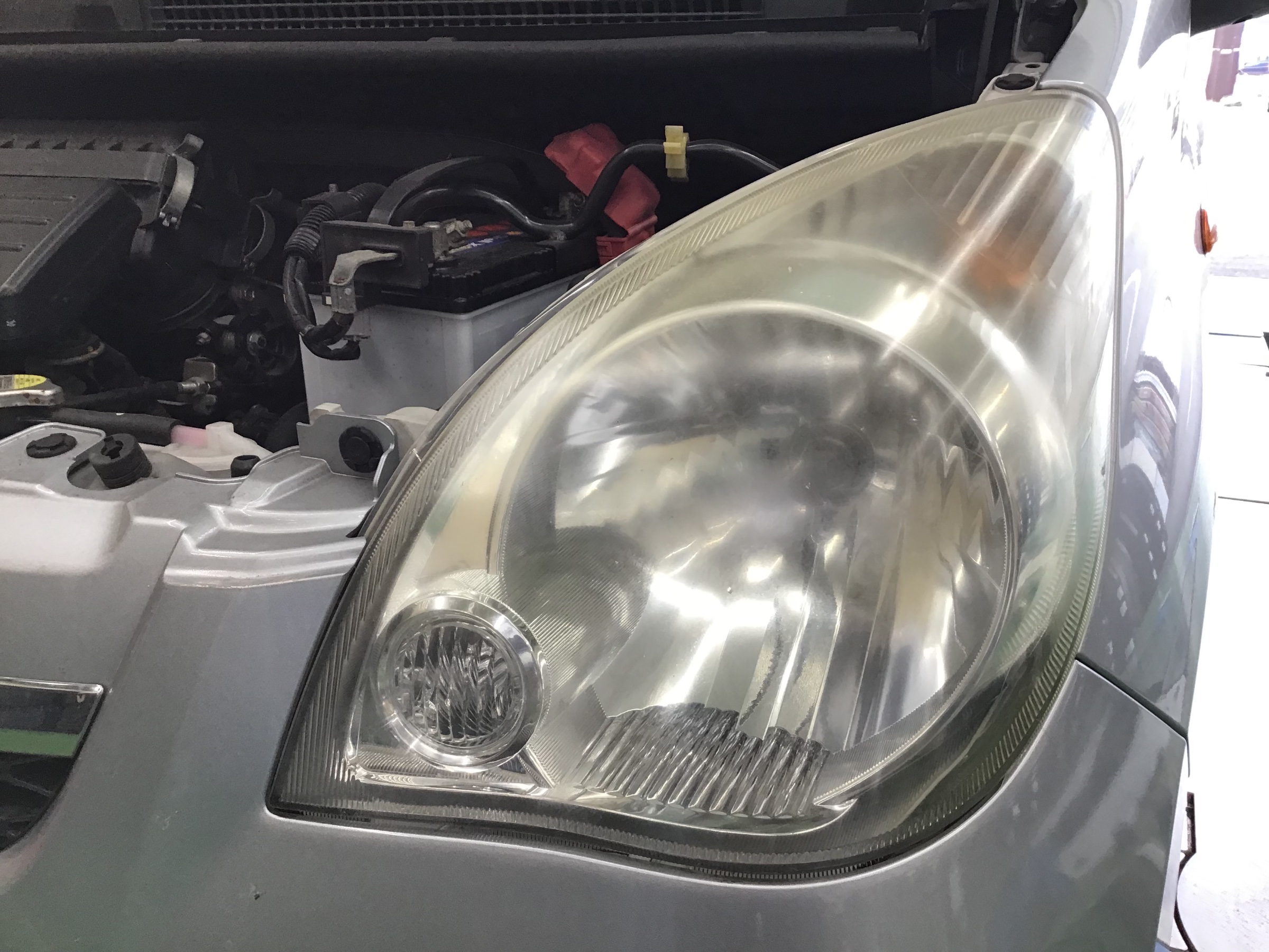 黄ばんだヘッドライトも磨いてコーテイングすると