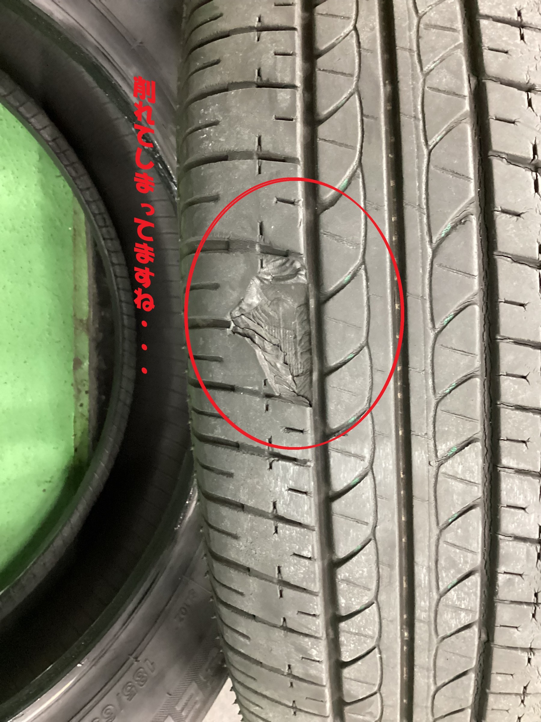 タイヤのトレッド部(接地面)がえぐれてしまっていました