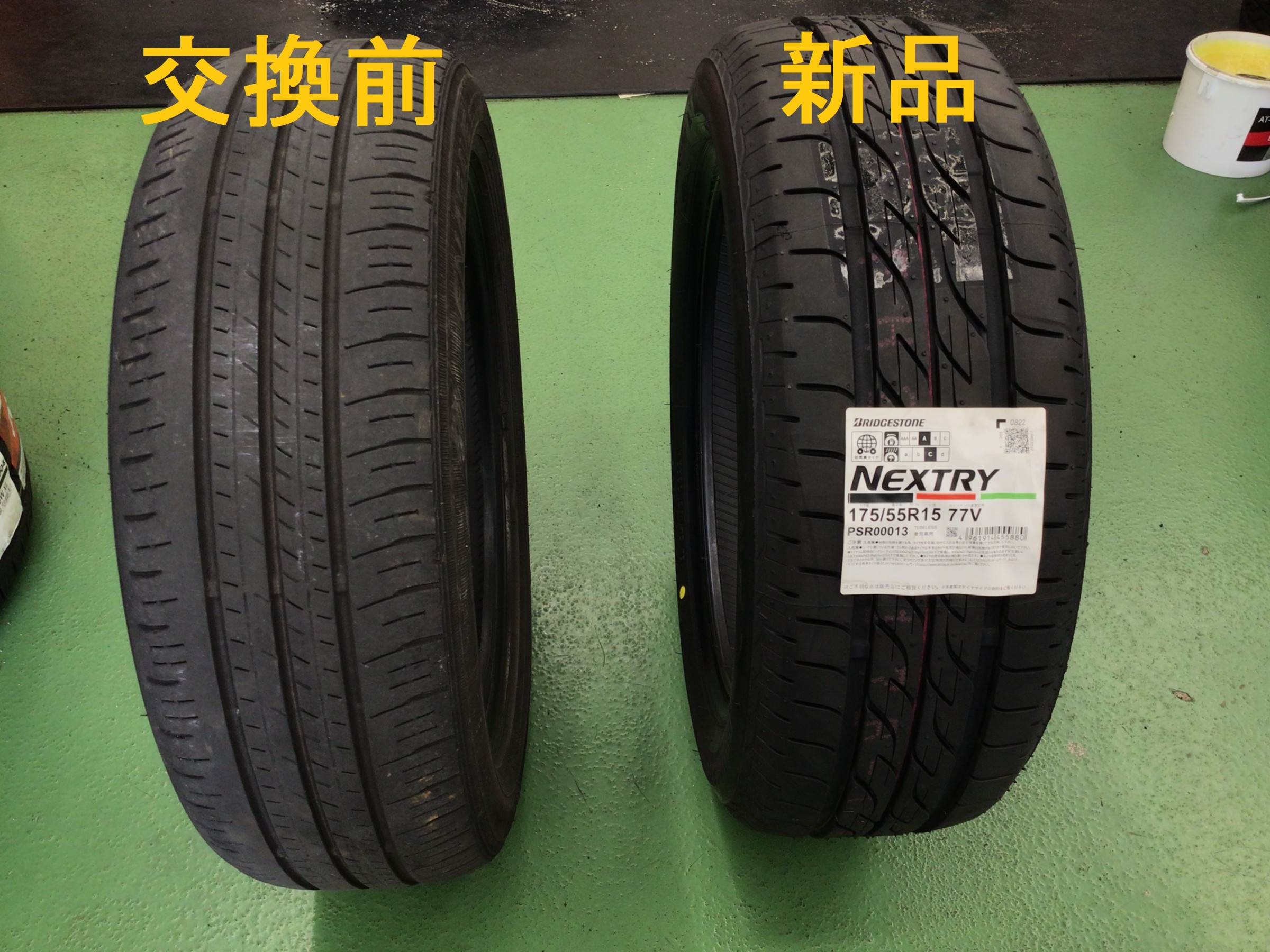 新品タイヤと比較すると溝の深さが全然違いますよね!