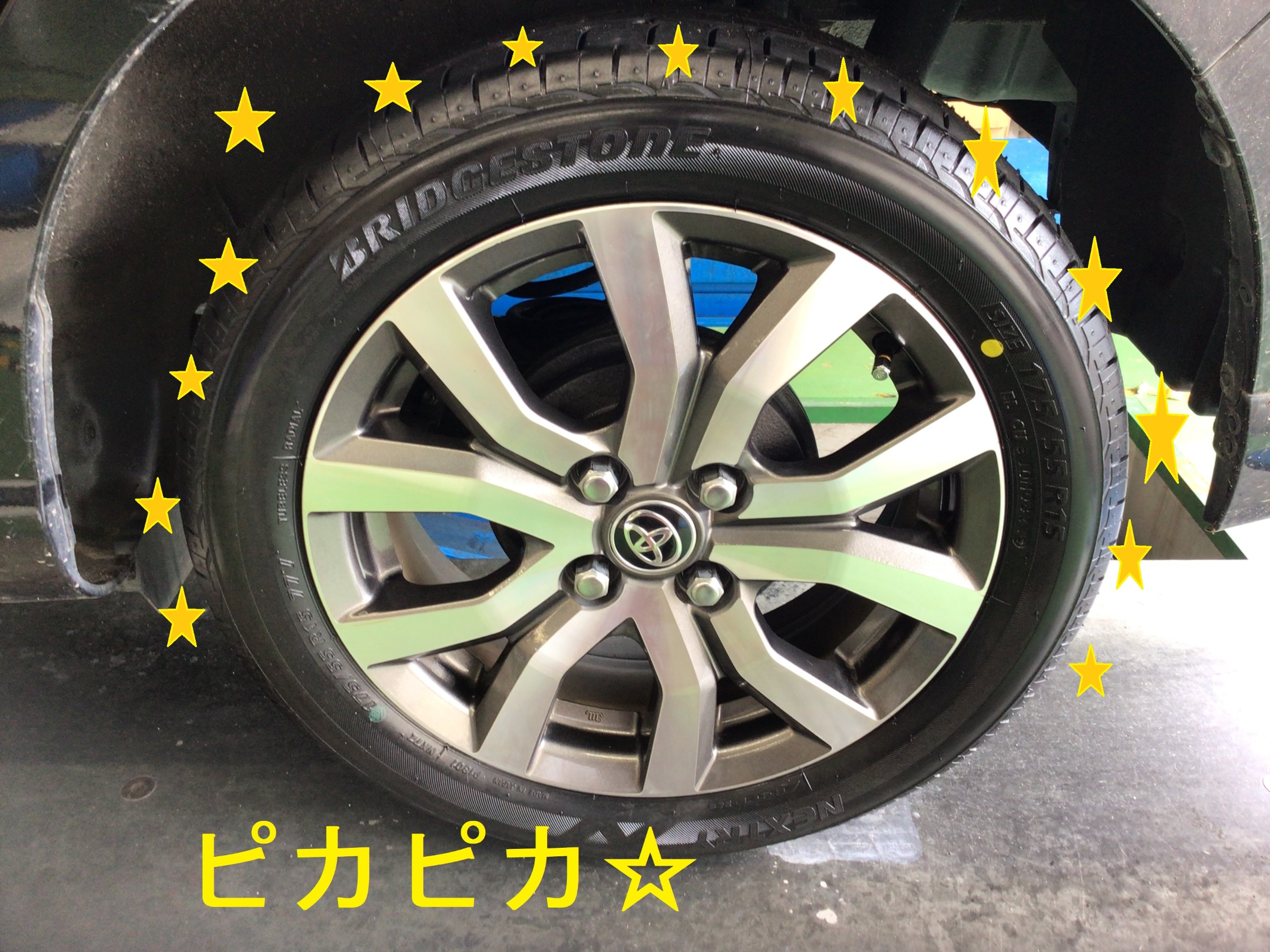 あとは新品タイヤに変えて、取り付けてピカピカ☆に仕上げてタイヤ交換作業終了♪