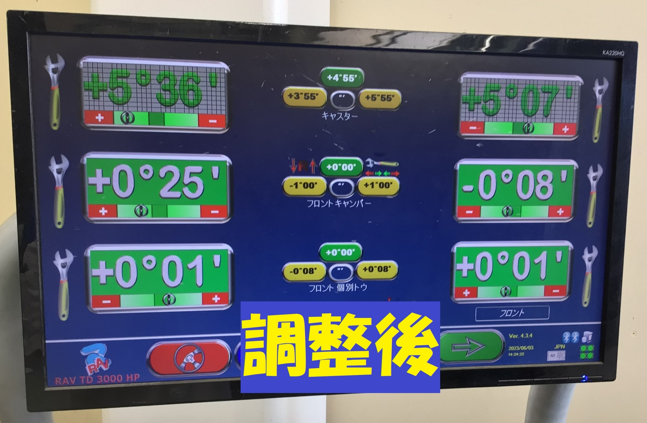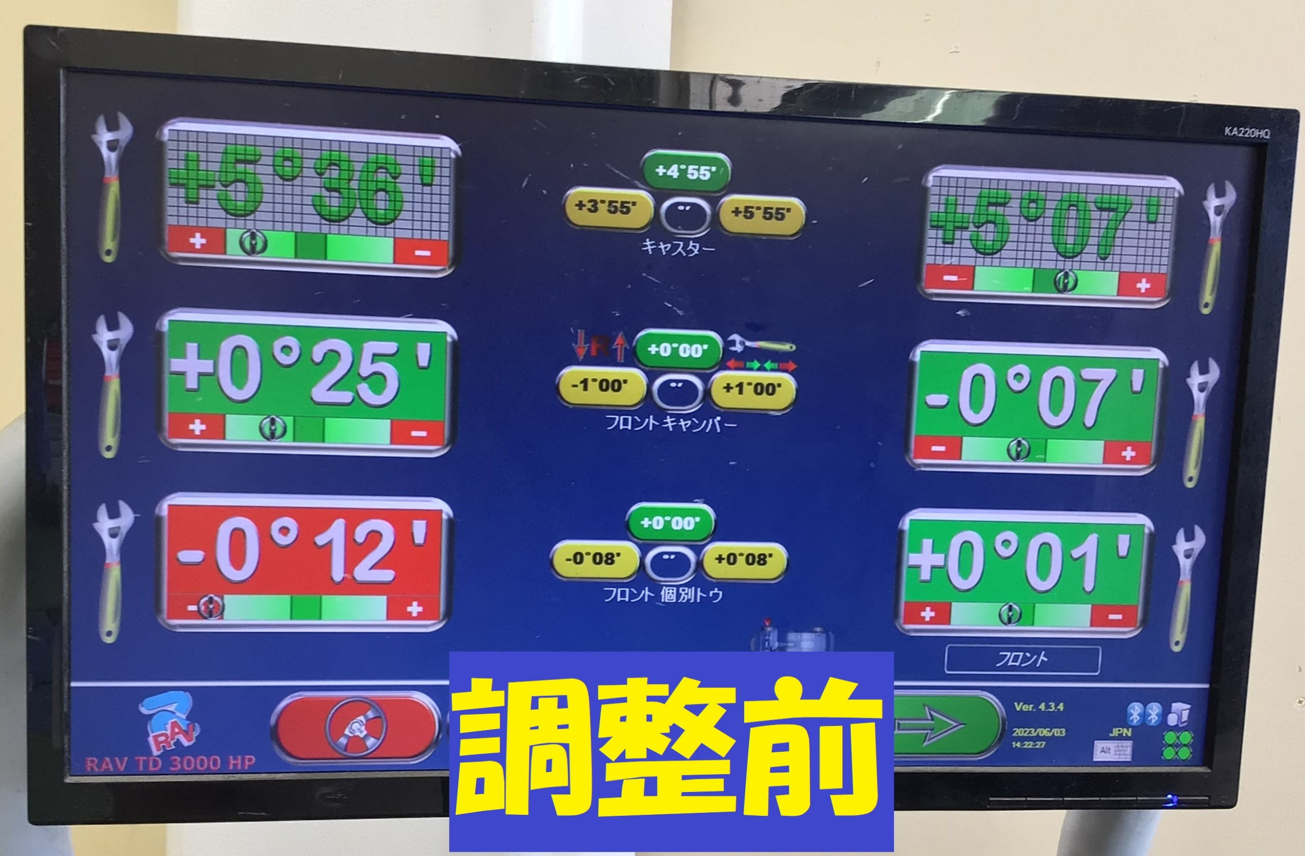 こちらのデータをもとにフロント トーを調整していきます。