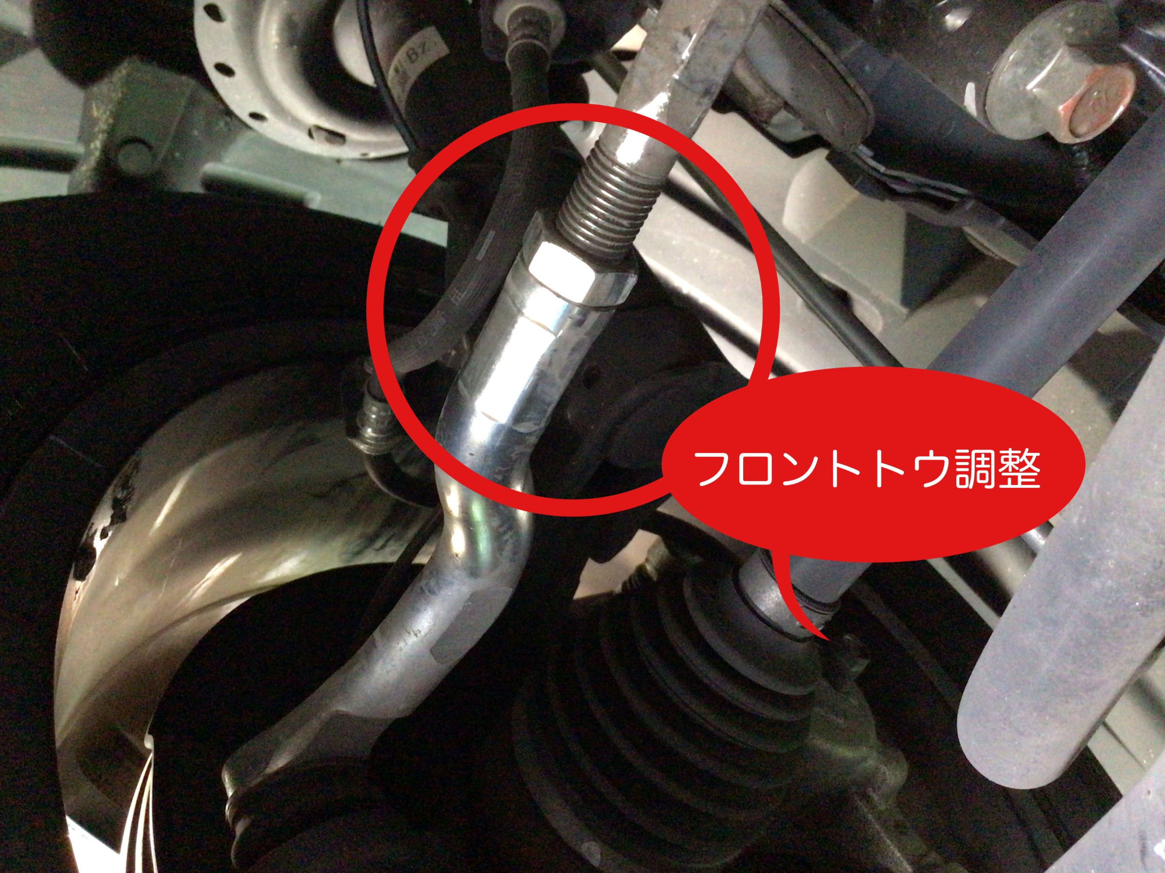 調整前が、左前:-0°07 右前:-0°12 でトウアウトから