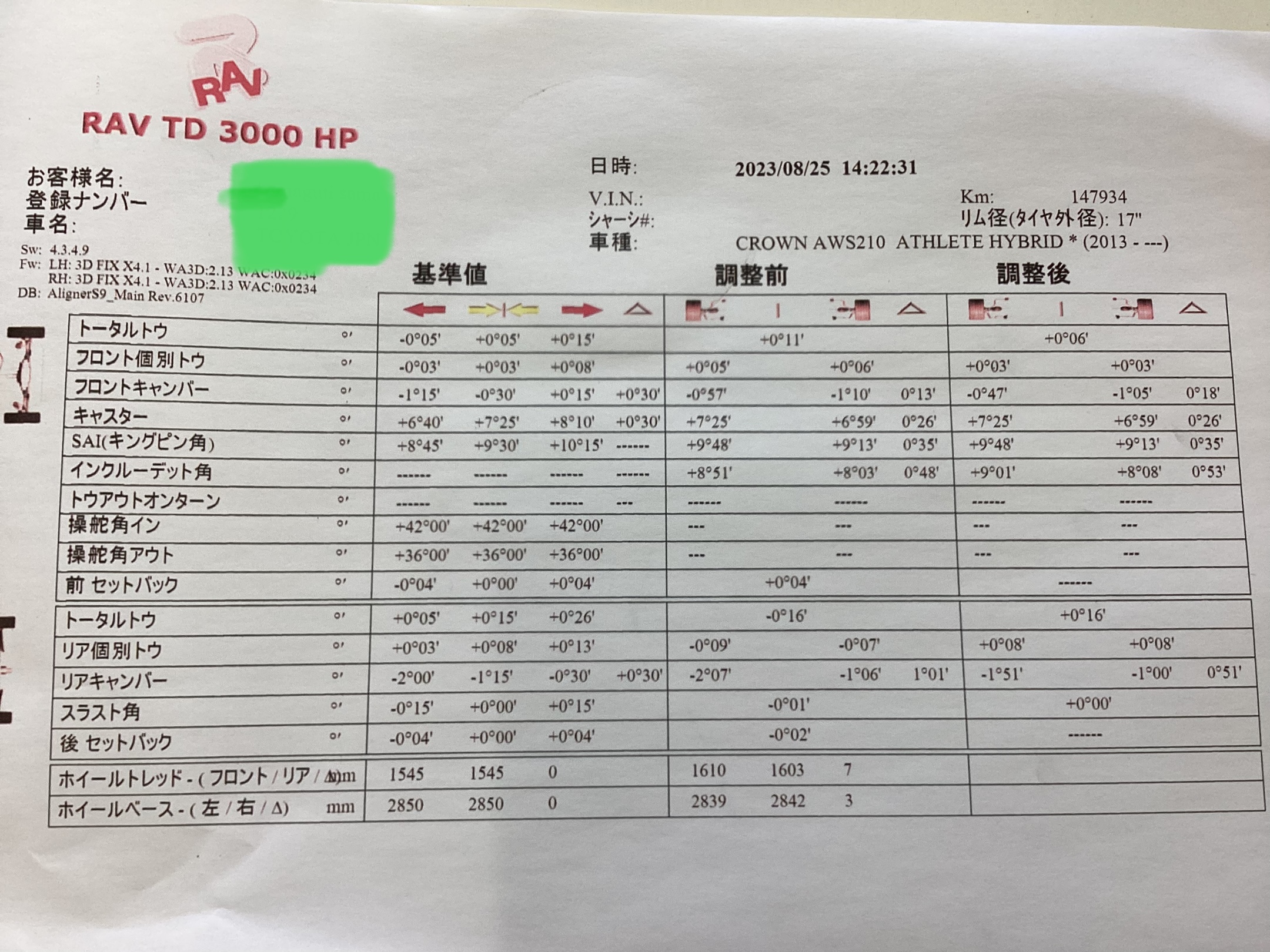 当店では、数値データでタイヤの取り付け部分の歪みを見ることができるので
