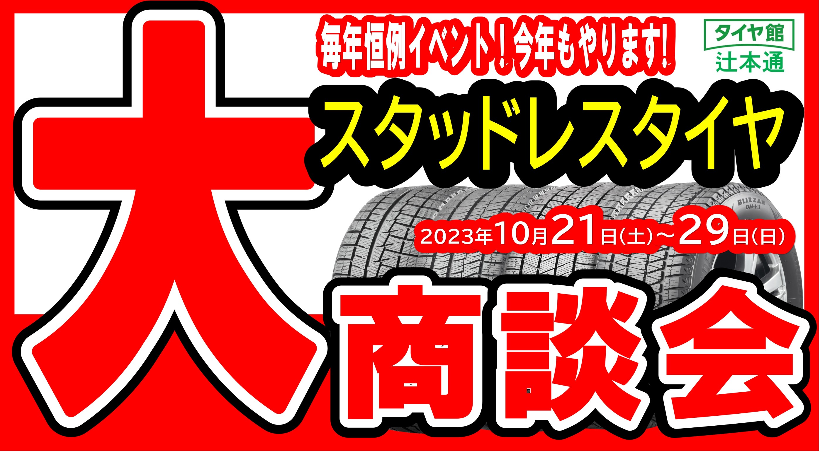 【スタッドレス&夏用 タイヤ大商談会】2023年10月21日(土)~10月29日(日)開催!