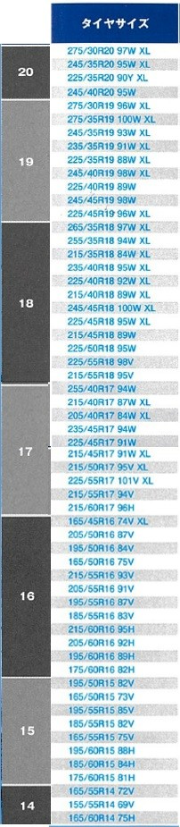 サイズ ラインアップ