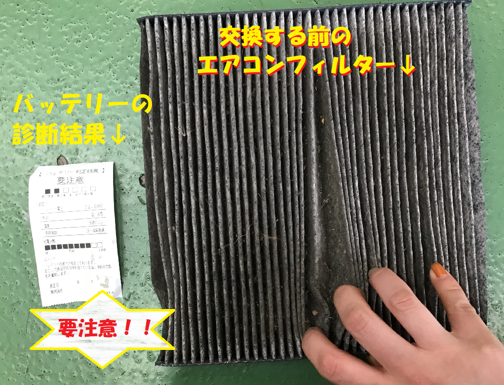 安全点検で来店され、バッテリーとエアコンフィルターが