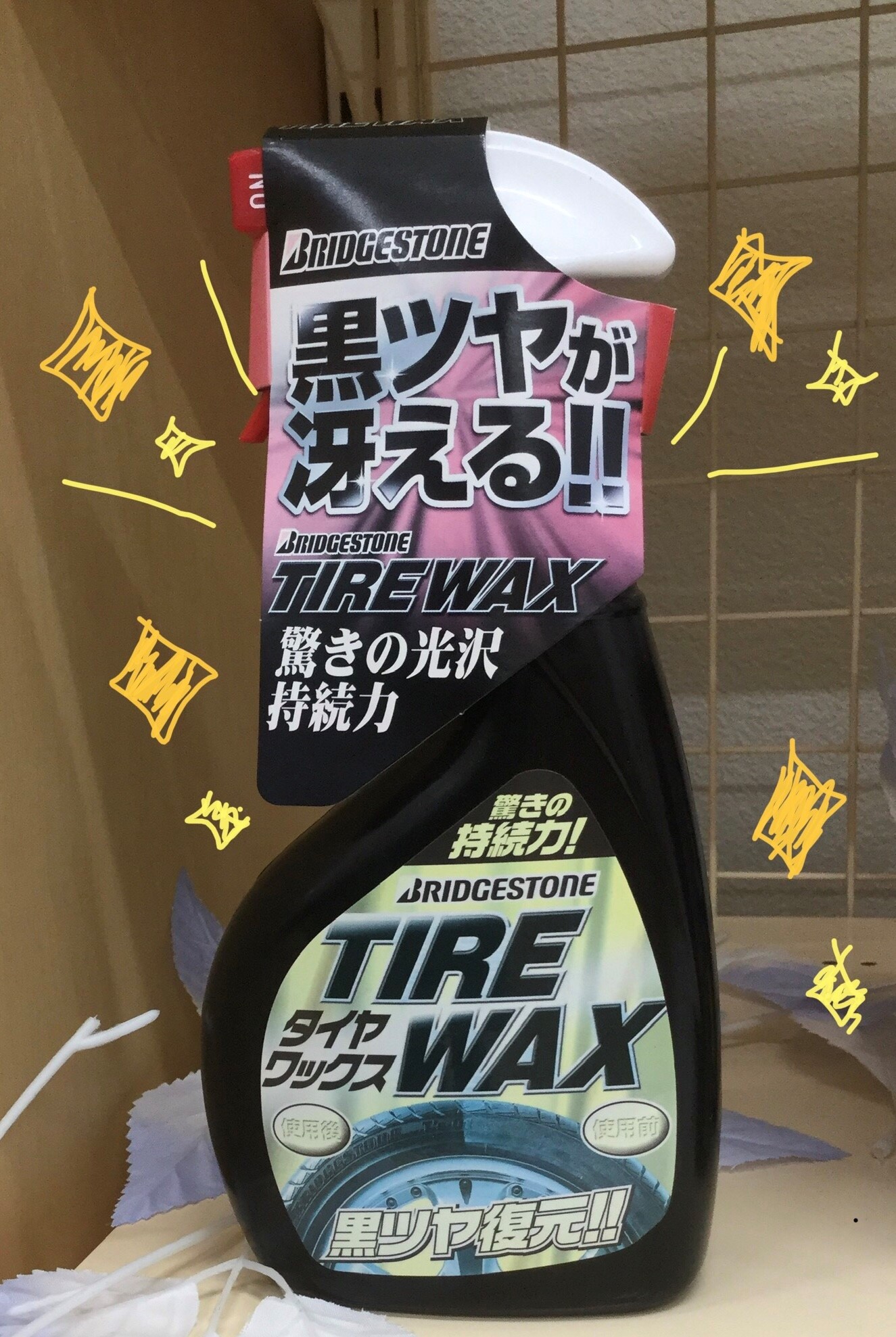 けど「BRIDGESTONE タイヤワックス」に出会って、解決しました。