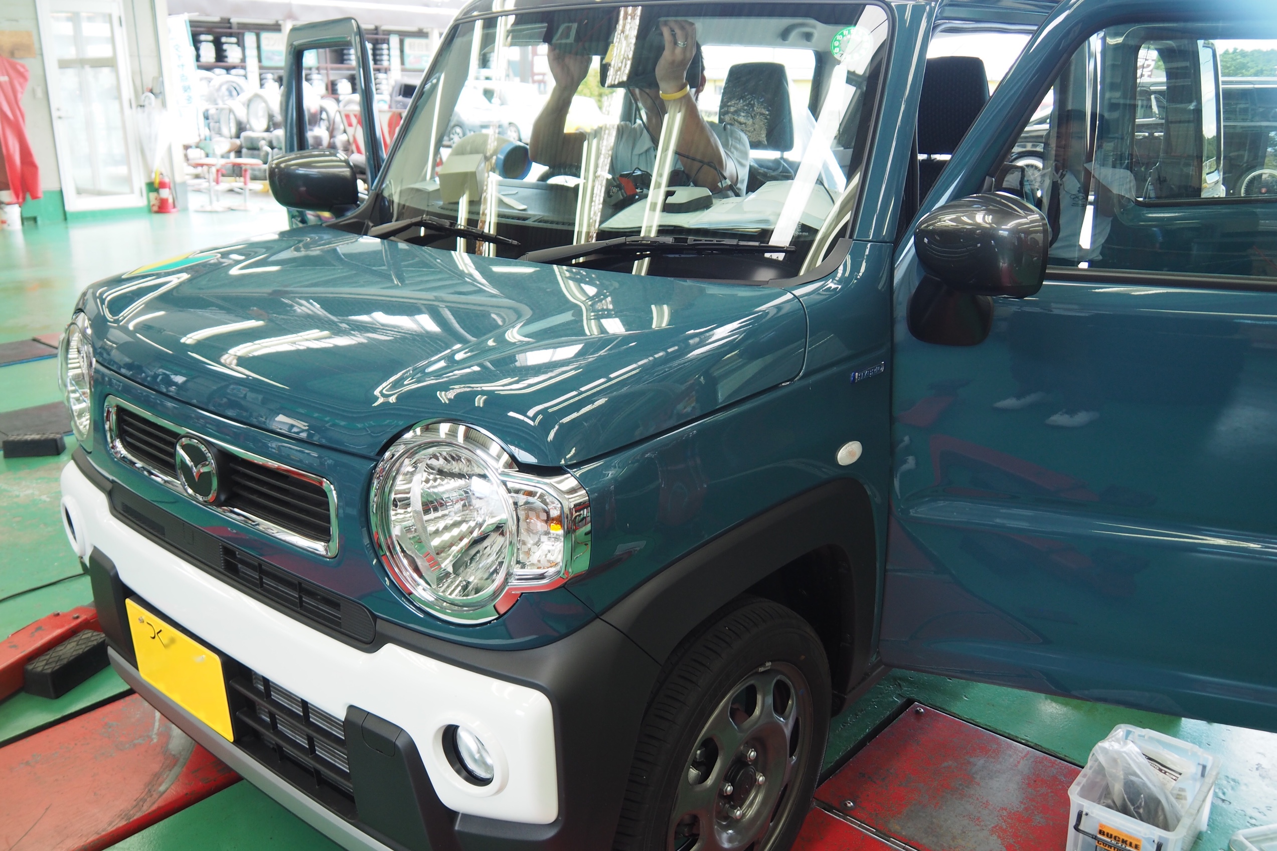お預かりの作業でフレアクロスオーバーは前後2カメラタイプのドライブレコーダーの取付でした。