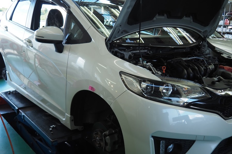 9月最初の土曜日は預かりの作業でFITの車高調取付からでした。