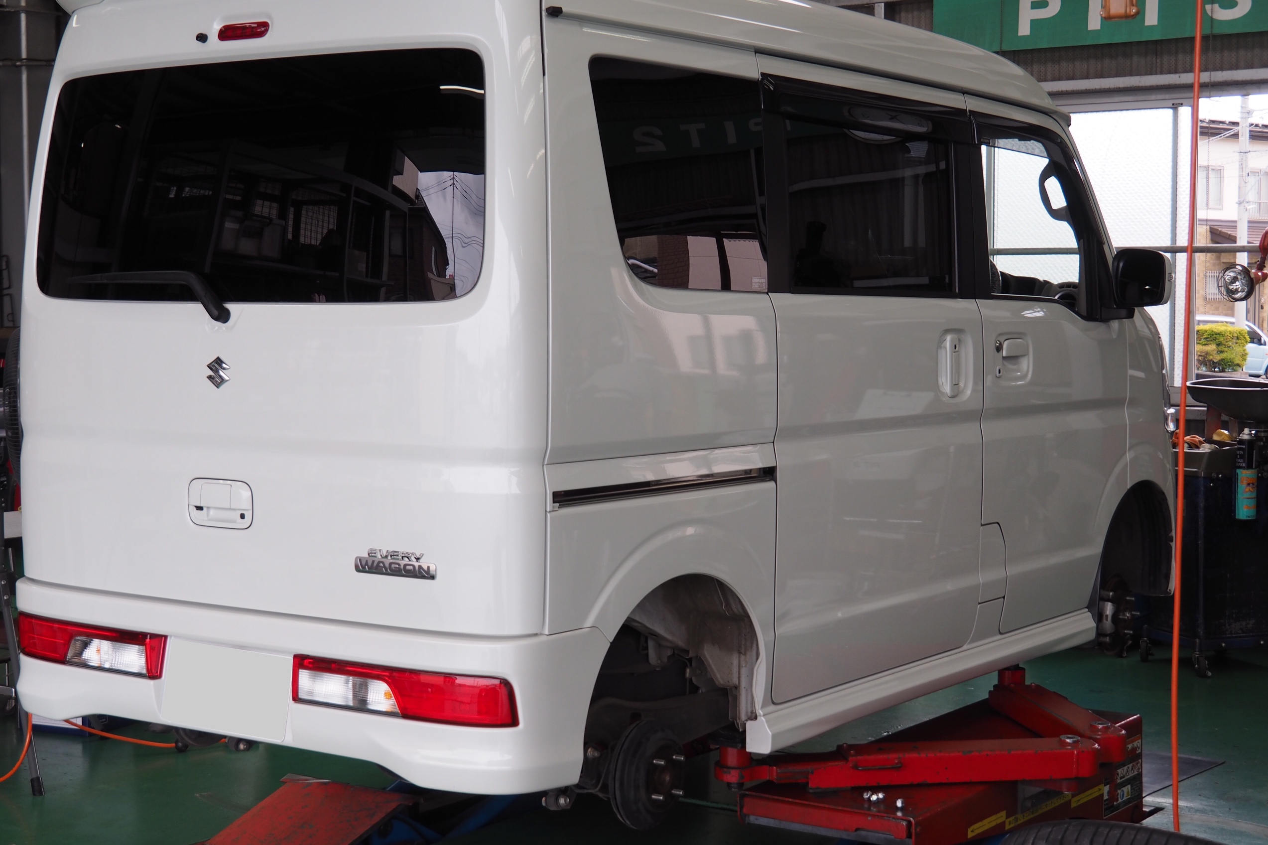 スタートはお預かりの作業でエブリイワゴンに車高調取付の作業でした。