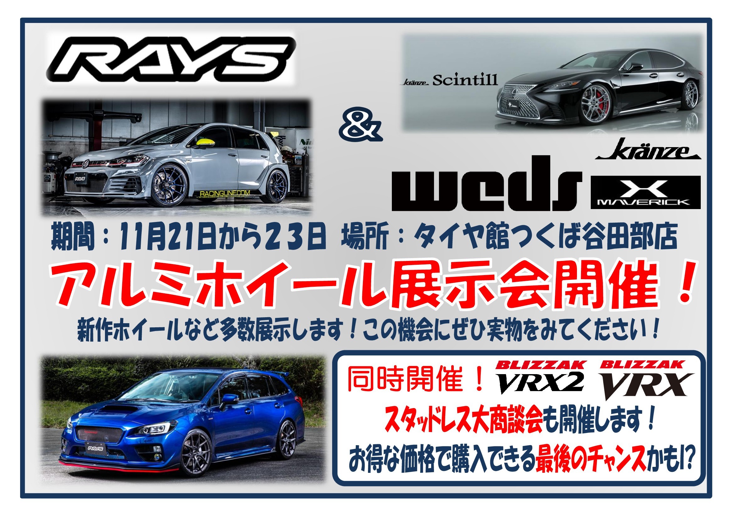 今月21日から23日まではアルミホイールの展示会も行うので、ぜひご来店お待ちしております。