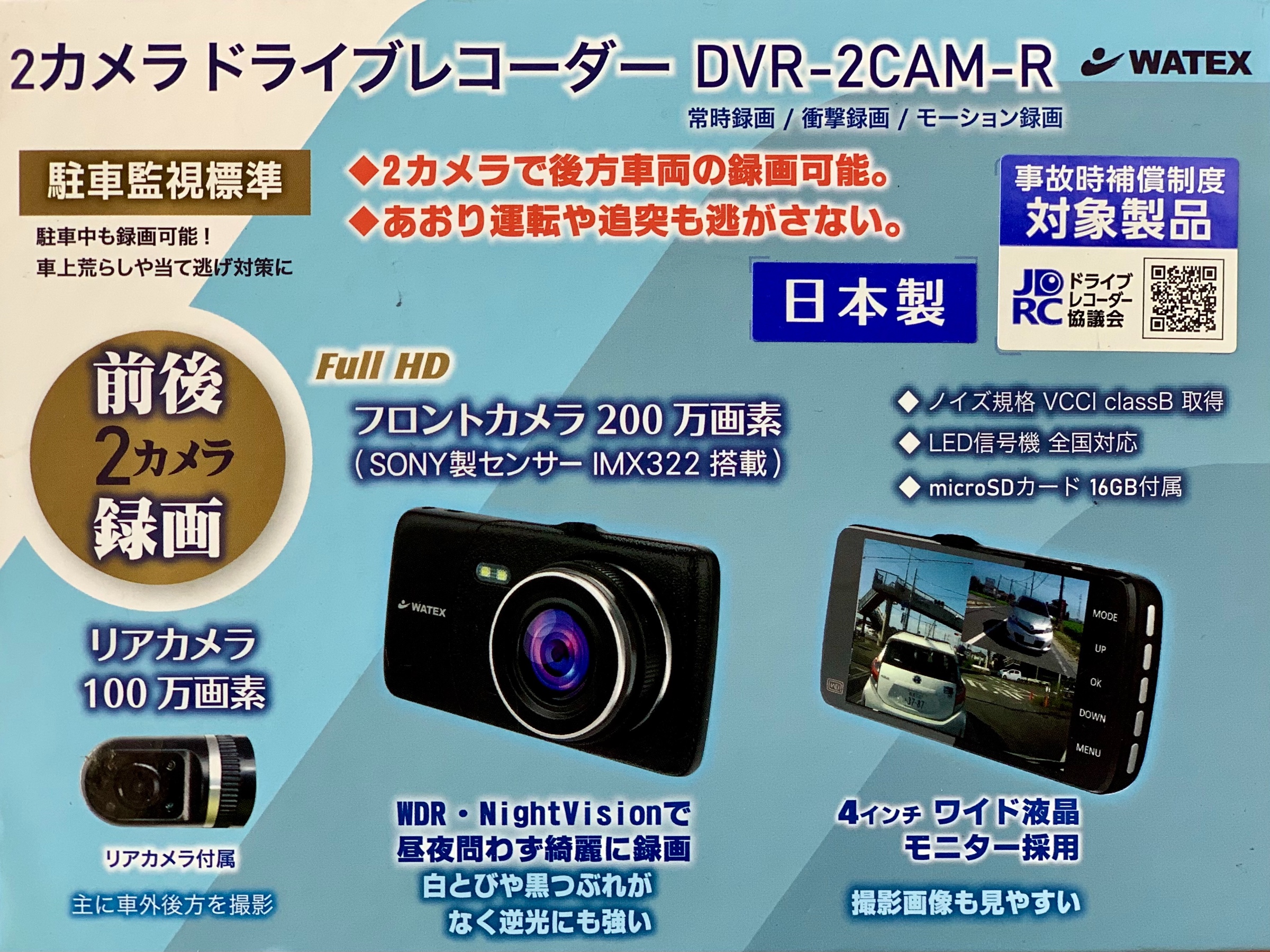 ドライブレコーダーはWATEX製の2カメにな