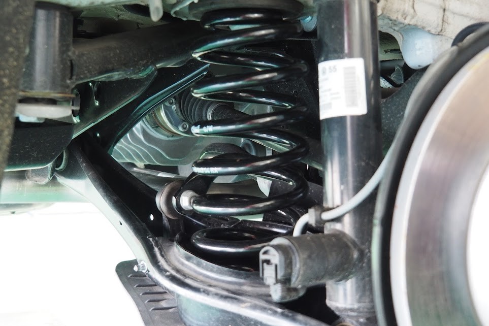 取付後は腰高感もなくなり、20インチのアルミホイールもより引き立つ感じになりました。