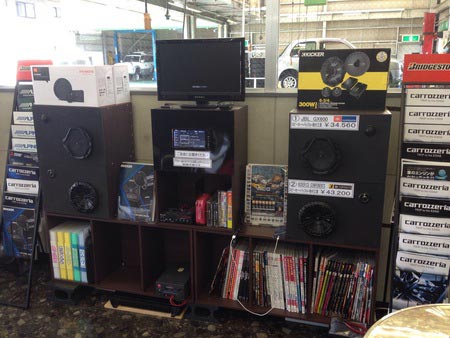 なかなかタイヤ館では展示していない、キッカーとJBLのスピーカー
