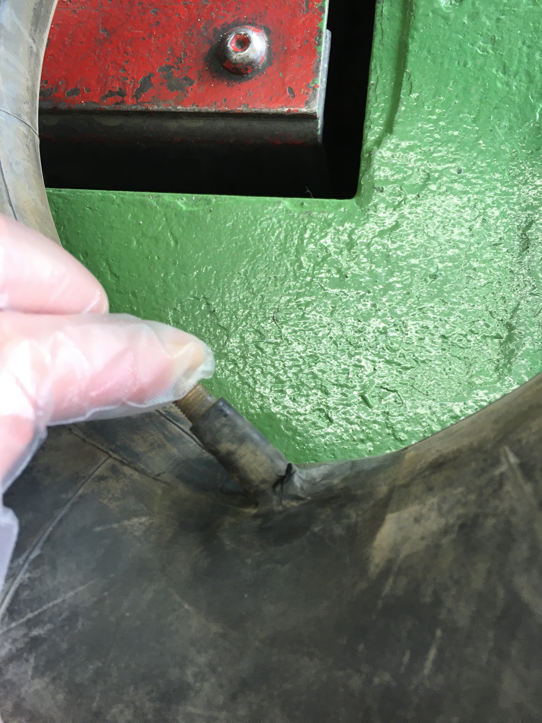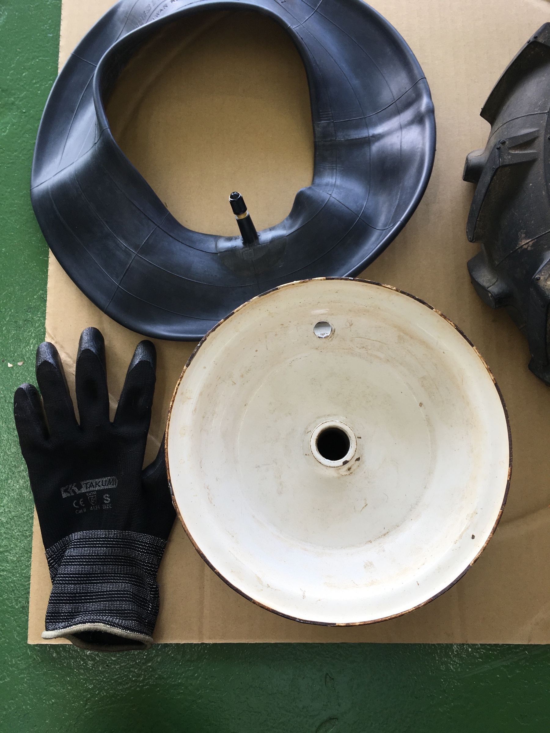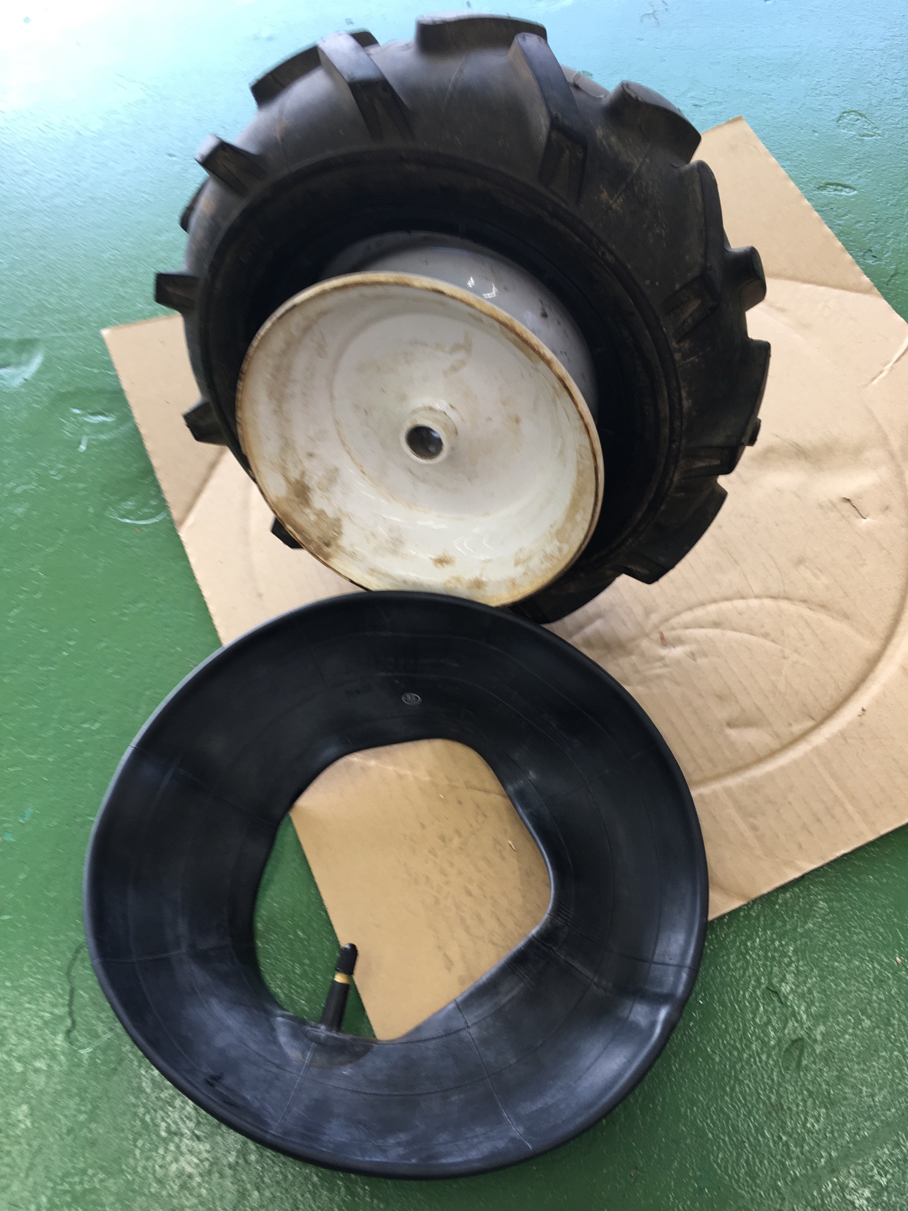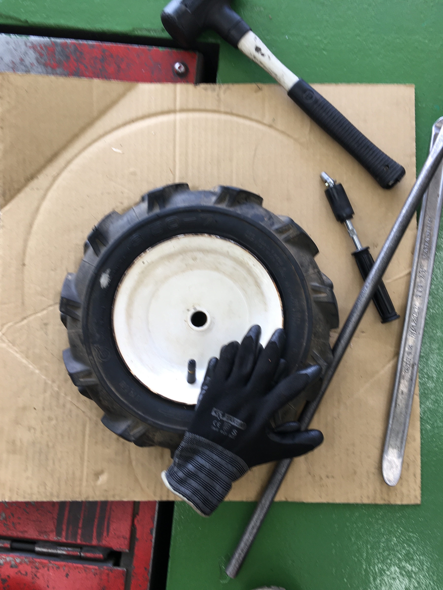 今回は農業用機械のタイヤチューブの交換です。空気を入れて一晩経つとペチャンコになってしまうという事で…