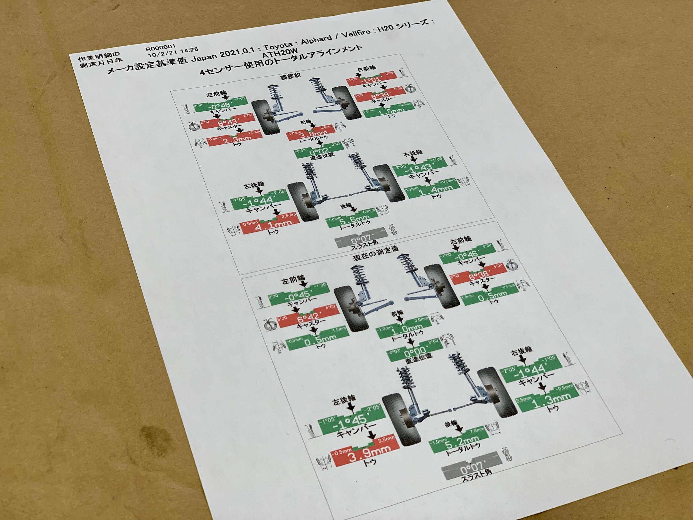 ヴェルファイア アライメント ポスト 2021年12月1日 こんにちは! 前回、車高調取付を実施したお車のアライメント作業です。 トヨタ ヴェルファイアです。 調整終了です。 カテゴリ:タイヤ関連 担当:矢口