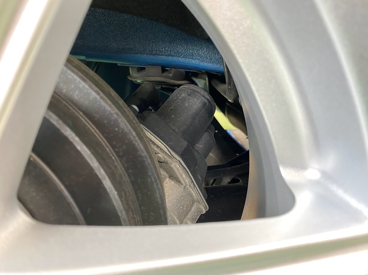 リアは特に電子制御式のサイドブレーキの機構がついているので、ホイールサイズに