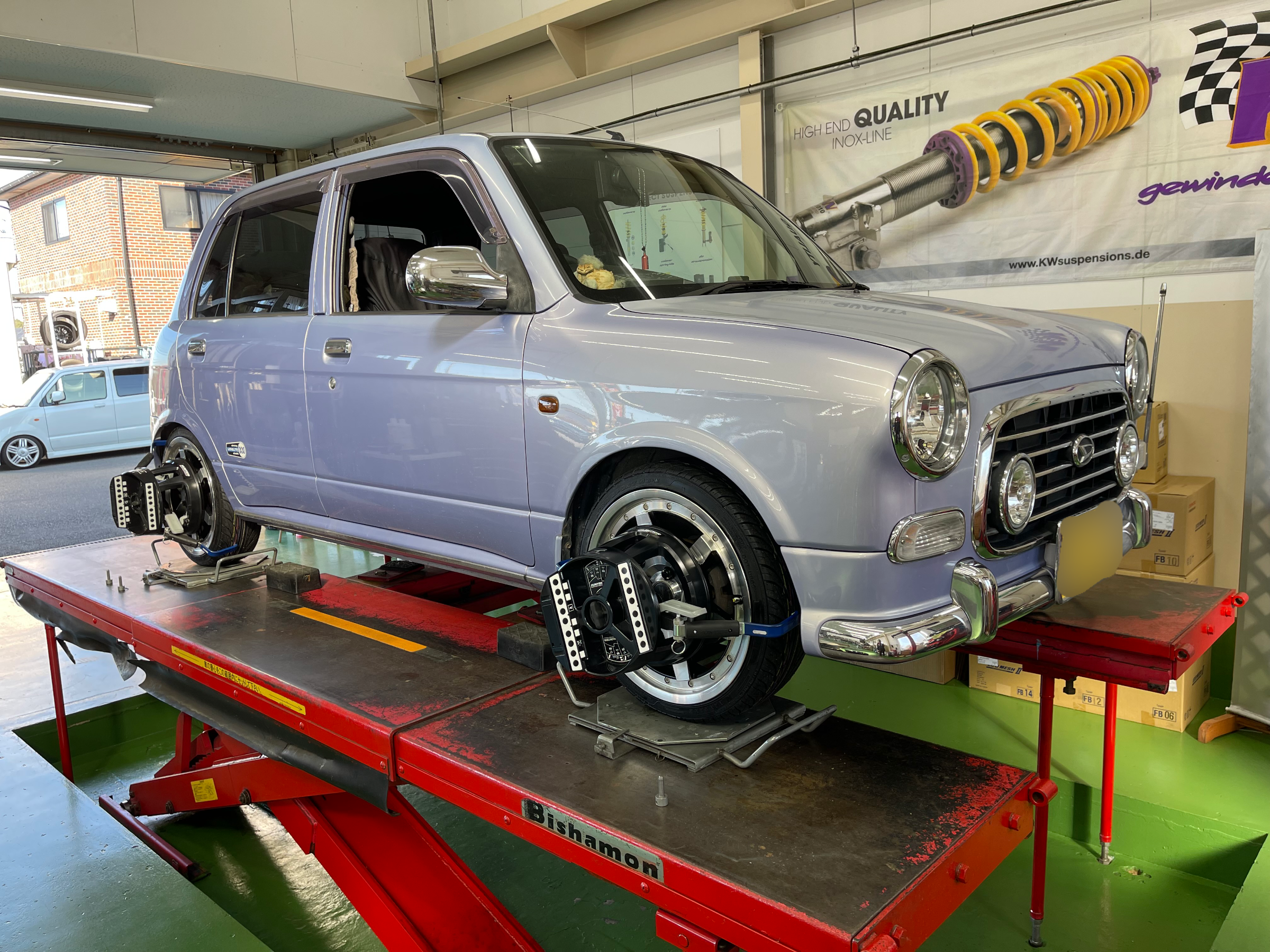 さて、今回のご紹介はミラジーノのアライメント作業です。