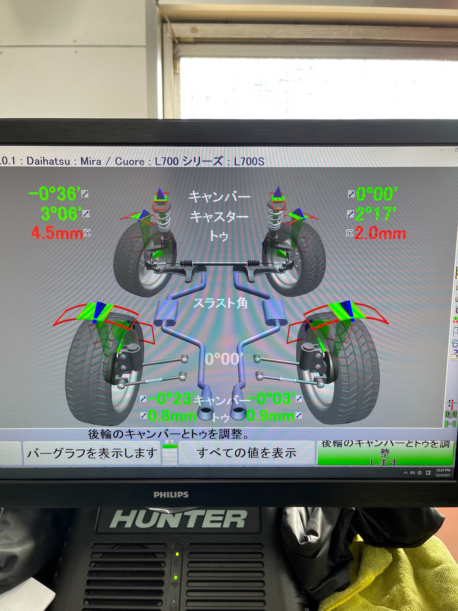 長年乗り続けてる方、足回り交換した方、中古でお車を買った方、測定だけでも是非ご相談ください!