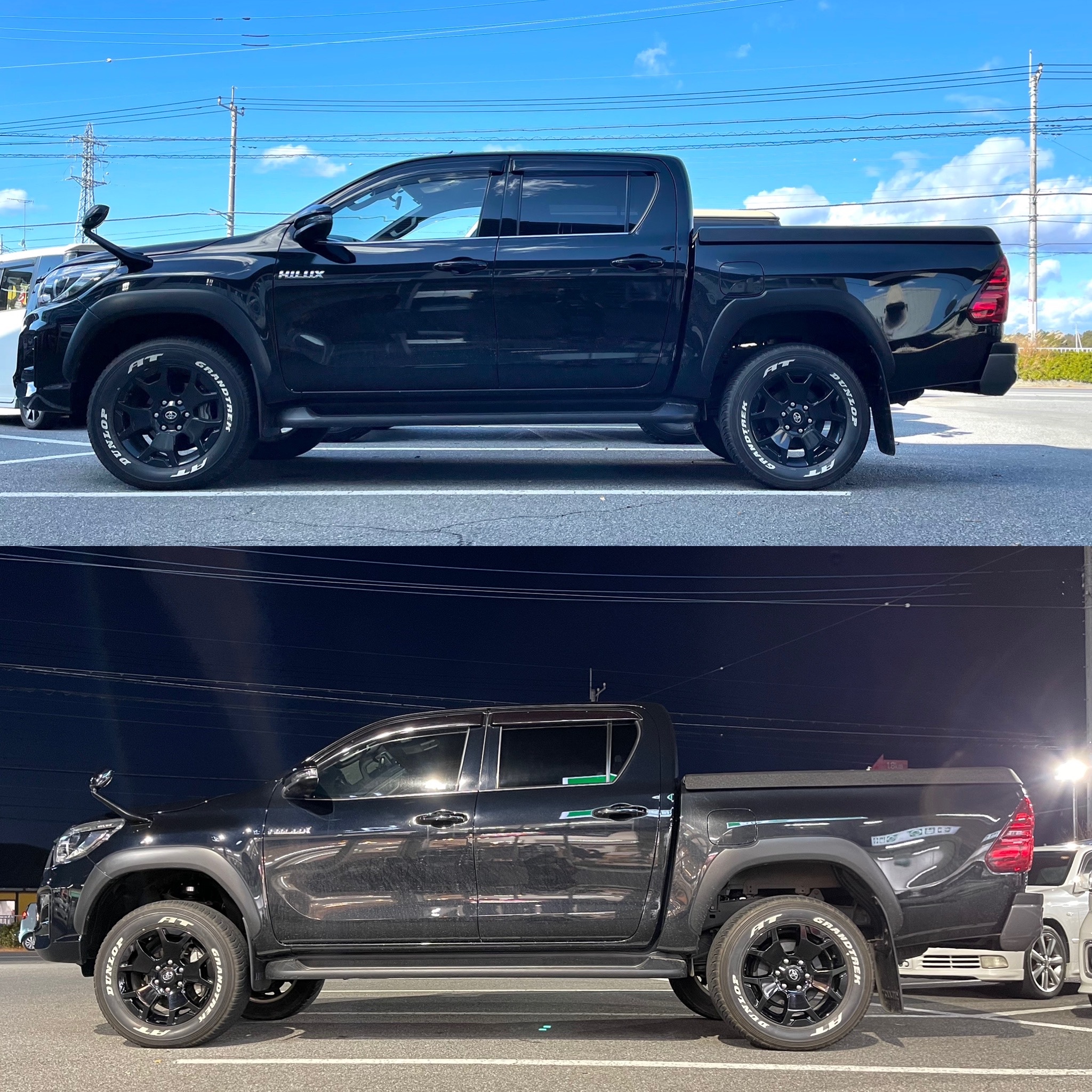 ハイラックスはフロントが気持ち下がってるのでそれを並行っぽくする感じになります。