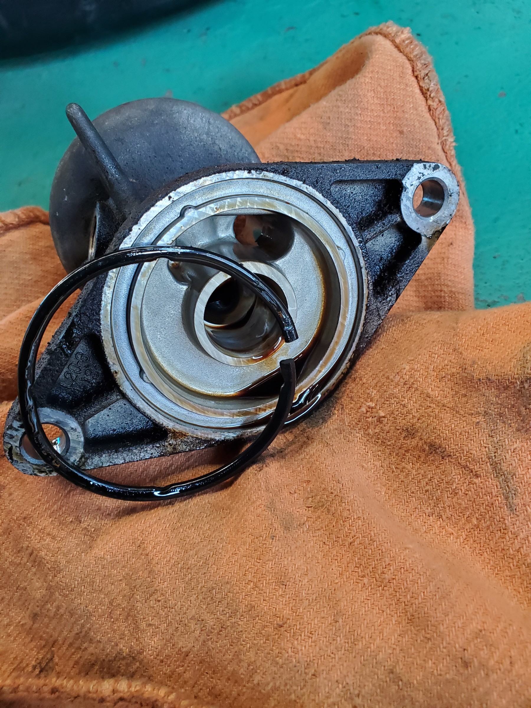 今回の1番の整備ですが、オイルエレメントの裏側