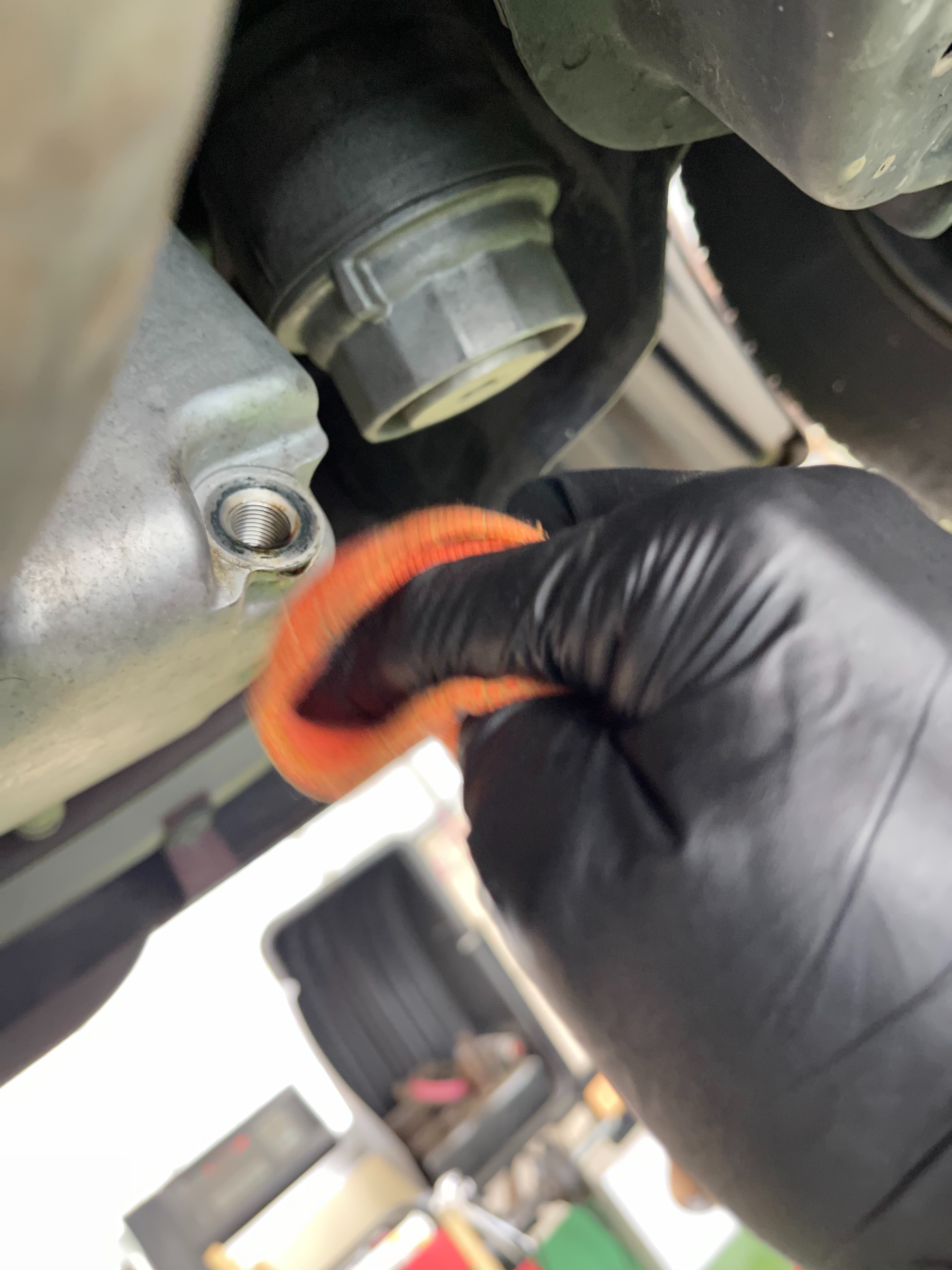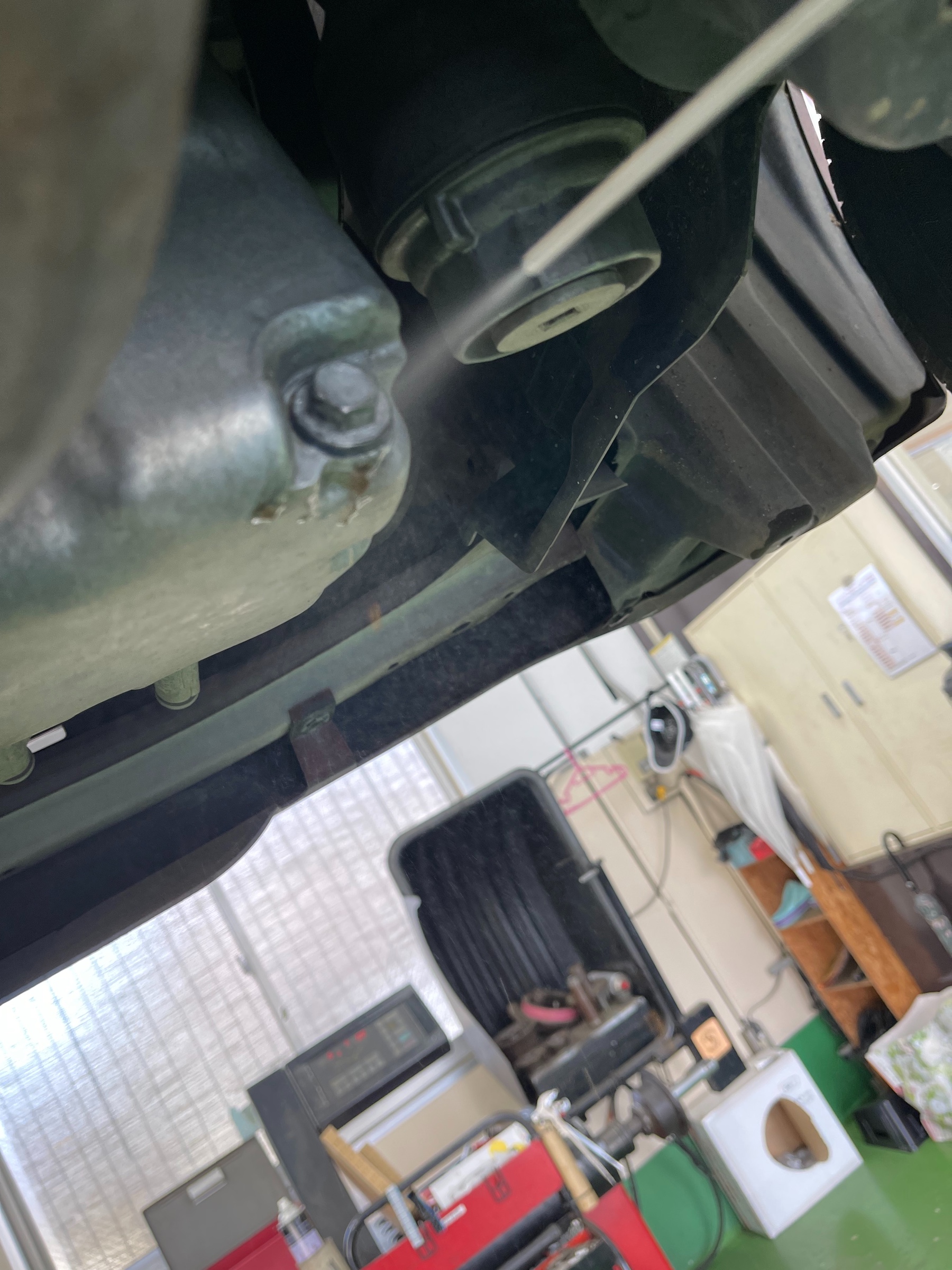 まずはリフトで車両を上げてドレンボルト(ネジ)を緩めてオイルをドバ―――――っと‼