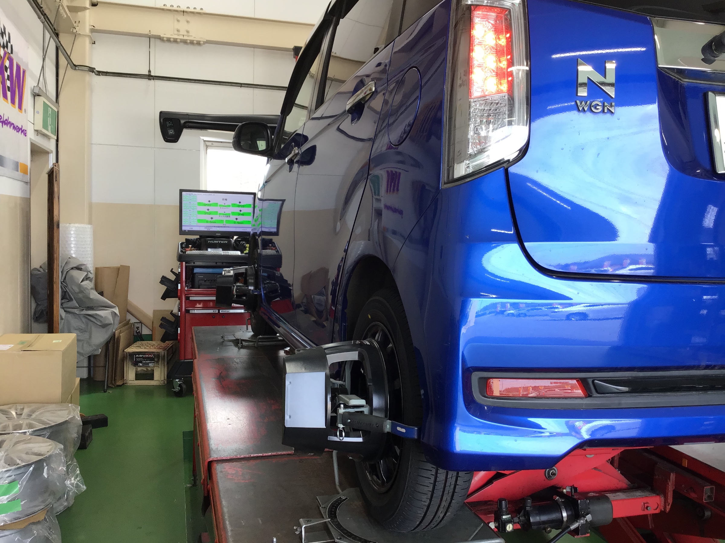 ホンダ N-WGNのタイヤ交換とアライメント作業のご紹介です。