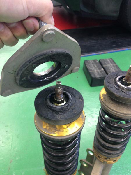 今までも車高調が付いていたのですが、今まで付いて車高調がアッパーマウントとショックが